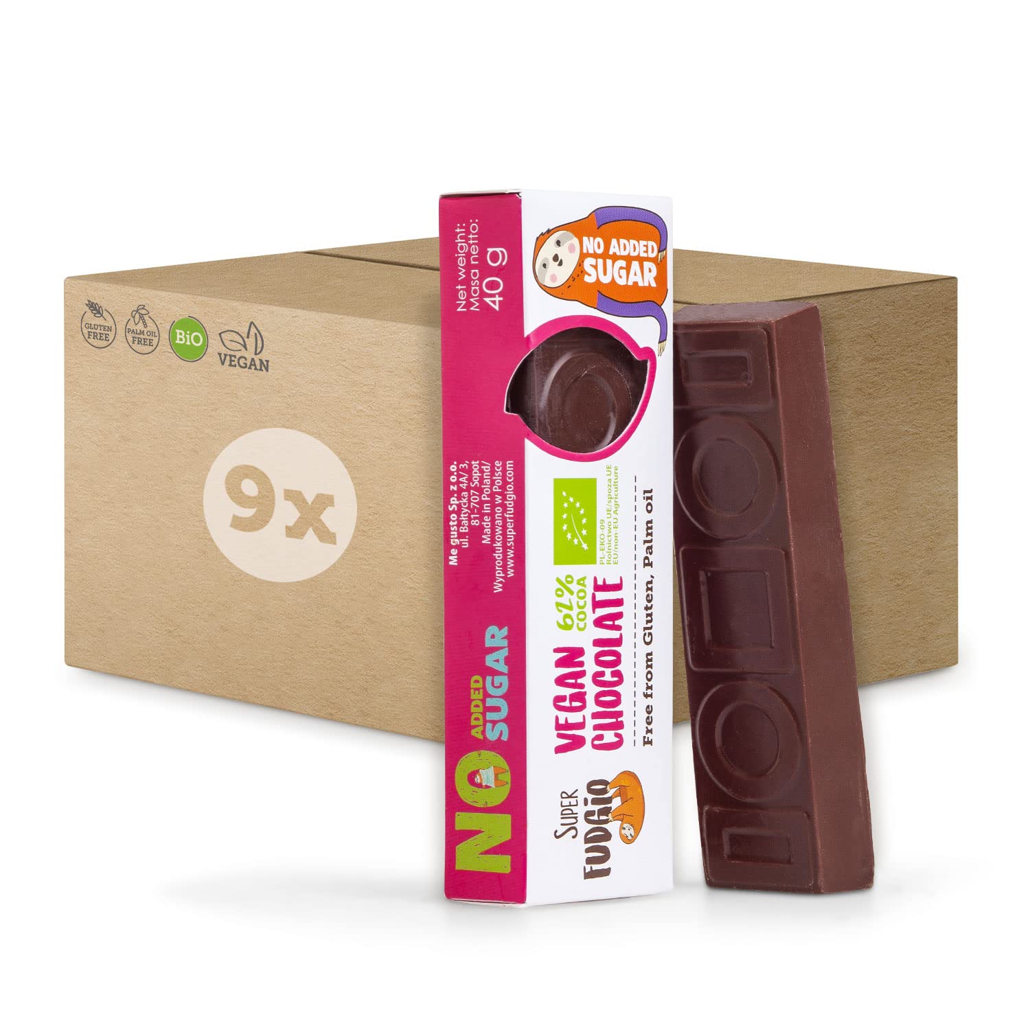 SUPER FUDGiO Lot de 9 barres de chocolat organiques Bonbons bio et sans sucre Vegan – Sans gluten Snack au chocolat sans sucre Chocolat à la noix de coco