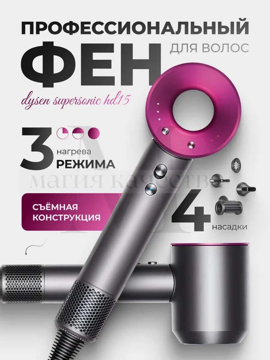 Фен для волос Dysen Supersonic HD15 – это идеальное сочетание стиля и функциональности, которое сделает укладку волос легкой, быстрой и приятной. Этот фен дайсон как оригинал представляет собой высококачественное устройство, подходящее для всех типов волос. С 3 режимами нагрева вы сможете выбрать оптимальную температуру для своей прически, обеспечивая бережное обращение с волосами. Благодаря бесшумному режиму, фен копия дайсона работает тихо, что делает его идеальным для утренних сборов без лишнего шума.