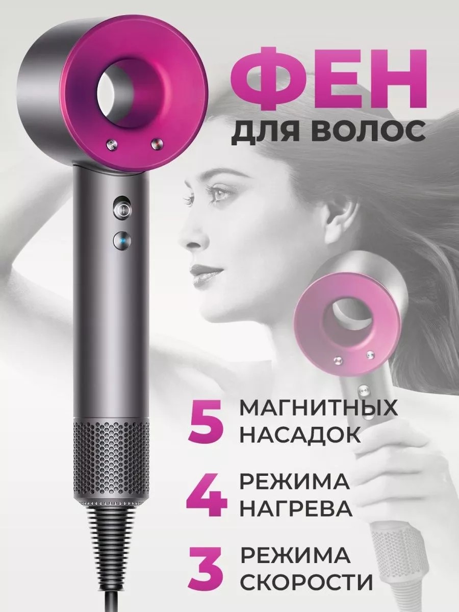 5) A nozzle for creating a directed airflow with a wide air dispersion angle. Because it covers a large area of hair, this attachment is suitable for drying thick and coarse strands. Magnetic bases make changing attachments very easy, and they remain cool during use. The set also features overheating protection, a cool air blast, and an ionization function. This hair dryer with attachments is an excellent purchase for a beauty salon, home care, travel, and even as a travel accessory. Professionals call it a worthy alternative to the Dyson. Before shipping, the hair dryer undergoes all functionality tests, is securely packaged, and is shipped to the buyer undamaged. You can about all the hair dryer's features by reading the Russian-language instructions included in the kit.