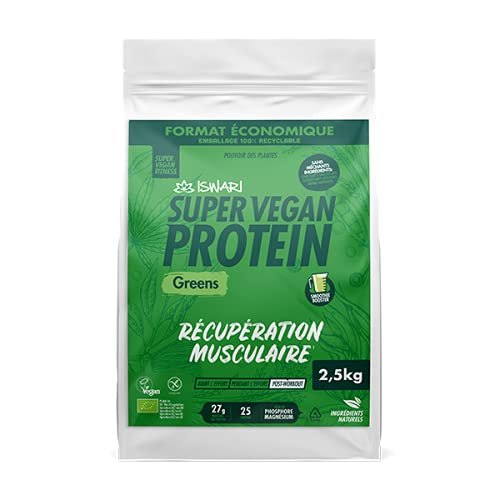 Super Vegan Protein Greens Iswari (2.5 kg) INGREDIENTS Chlorella, Spirulina, Maca Root, Hemp Protein, Whole Rice Protein, Pea ProteinIswari. PROTEIN_SUPPLEMENT_POWDER. Super Vegan Protein Greens Iswari (2.5kg). Super Vegan Protein Greens Iswari (2,5 kg) INGRÉDIENTS Chlorelle, Spiruline, Racine de maca, Protéine de chanvre, Protéine de riz complet, Protéine de poisIswari. PROTEIN_SUPPLEMENT_POWDER. Super Vegan Protein Greens Iswari (2,5kg).