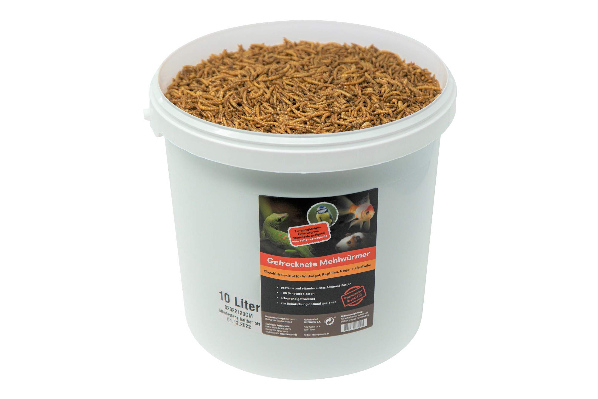 SUPERWURM 10 Liter getrocknete Mehlwürmer - Insekten getrocknet - Futter Snack für Fische, Wildvögel, Igel, Wachtel, Hamster, Ideales Igelfutter, Vogelfutter