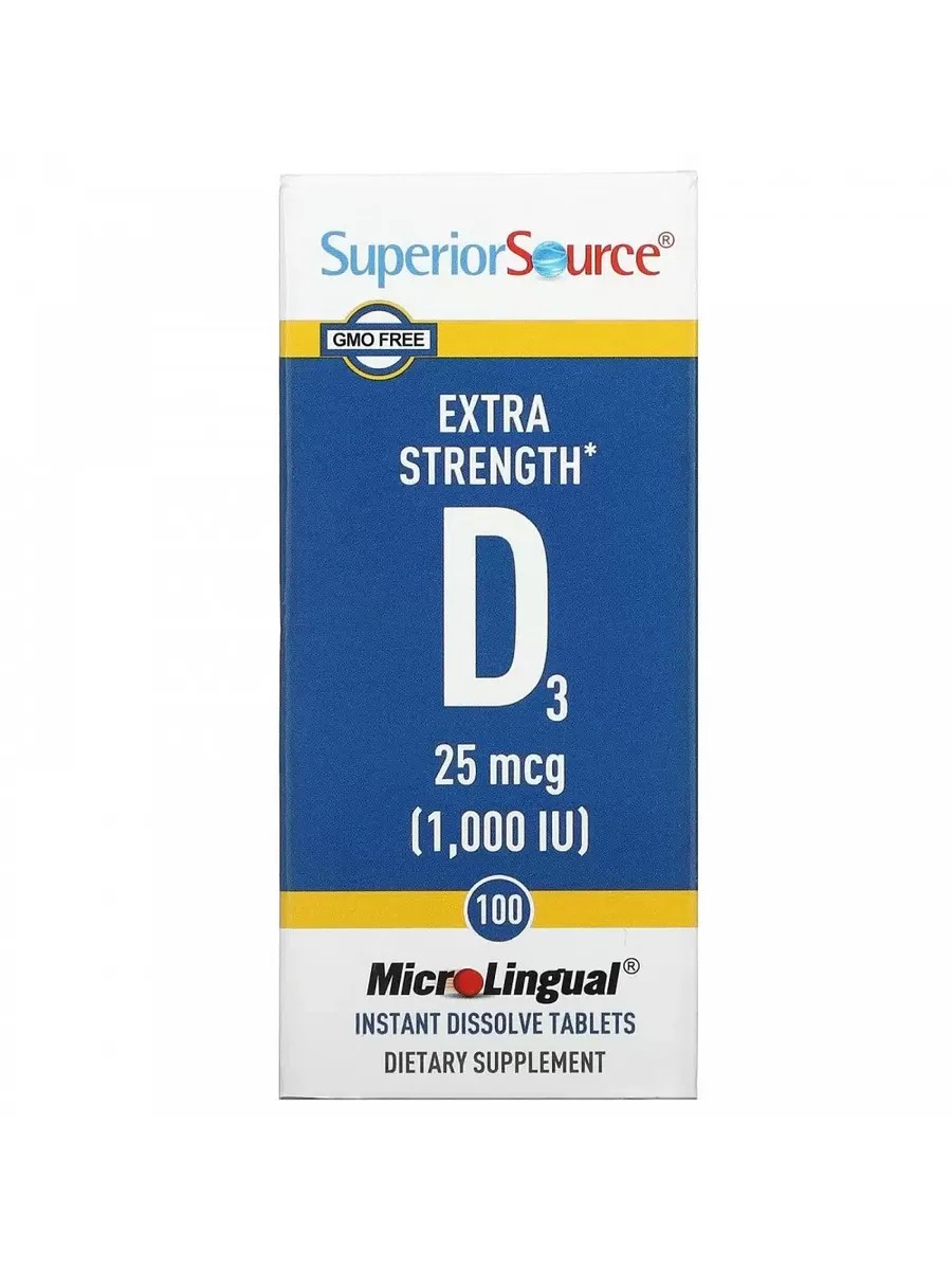 Superior Source Витамин D3 Экстра сила 1000 МЕ 100 микролингвальных таблеток
