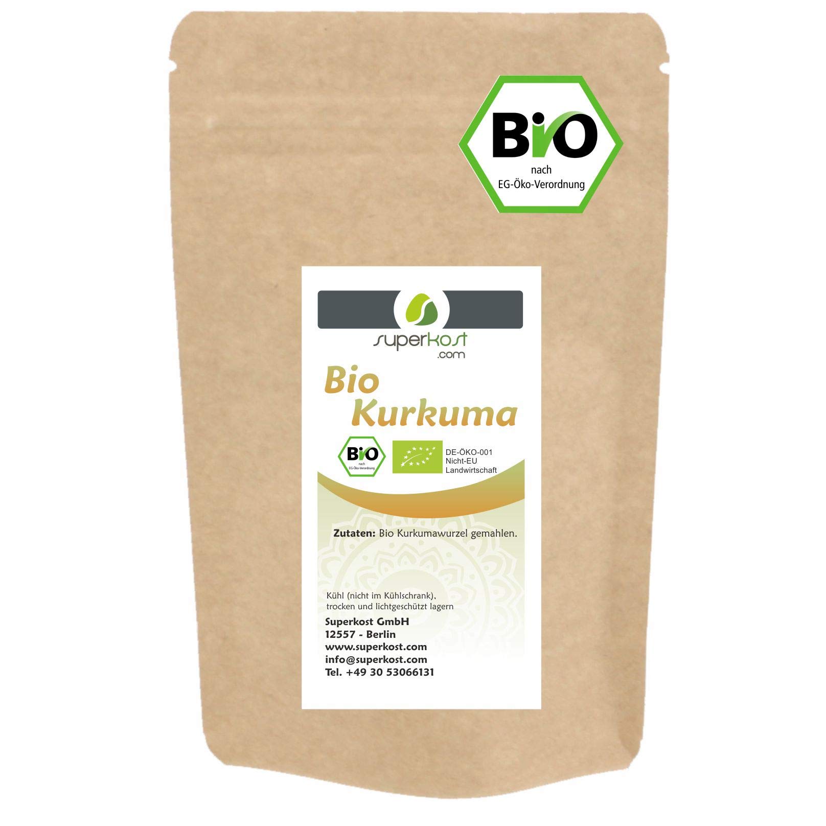 Money-back guarantee: If you are not satisfied with the product, we will refund the purchase price. No ifs, ands, or buts. Our goal is to provide the best quality at affordable prices. Health aspects are particularly important to us. We achieve this through regular checks and excellent relationships with our suppliers. Superkost GmbH was founded as a German company in 2010 and is your specialist for dietary and nutritional supplements. Organic has been our priority from the start, which is why we are regularly audited by the organic certification body DE-ÖKO-001. Our organic turmeric powder is of the highest quality and the base for our curry powder, packaged in a resealable zip-lock bag.