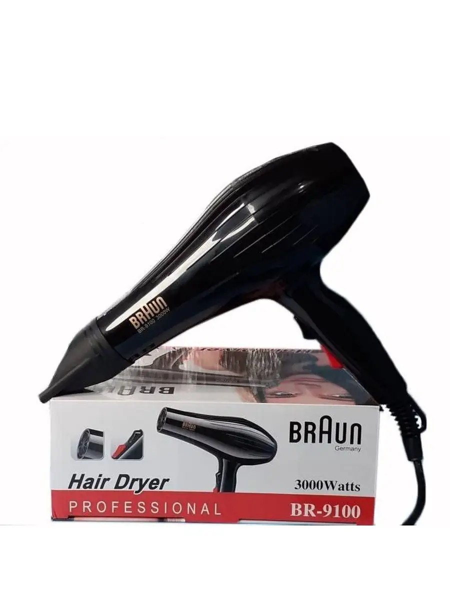 The BR-9100 hair dryer and attachments feature the latest technology: a removable mesh steel filter, a powerful electric motor, and a thermostat that protects the dryer from overheating. This hair dryer boasts an impeccable design, is lightweight, and compact. This lightweight design is essential for long-lasting performance.