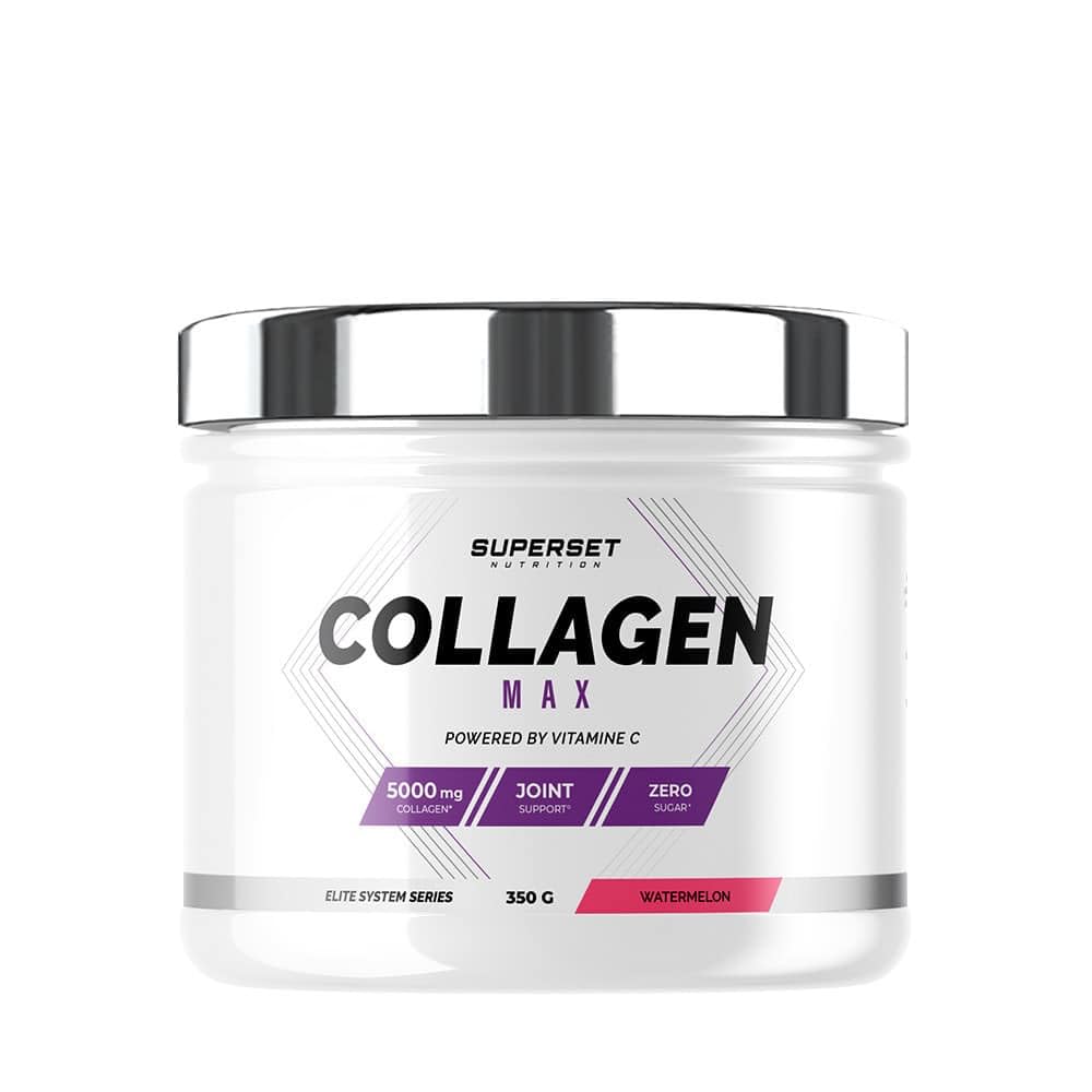 SUPERSET NUTRITION STRIVES TO OFFER THE BEST IN SPORTS NUTRITION. Each formula is designed to adapt to each individual's specific needs. The premium quality of the products is based on the synergy of ingredients, particularly through the Elite System Series innovation. This product is also certified anti-doping, gluten-free, and lactose-free. ZERO CALORIE! In addition to having no added sugar in its composition, Collagen Max makes it easier to hydrate thanks to its sweet and fresh watermelon flavor. Its delicious fruity taste allows you to increase your daily water intake. GOOD BONE HEALTH thanks to a synergy of ingredients that strengthens joints, gives them flexibility and elasticity, reduces fatigue, and optimizes comfort during workouts. ENRICHED WITH VITAMINS C, B3, and B8, its formula contributes to normal collagen formation to ensure the proper functioning of skin, bones, and cartilage. It also protects the immune system and cells against oxidative stress. 71 HYDROLYZED COLLAGEN is 90 absorbed by the body, making it even more effective. This perfectly dosed powder supplement helps improve athletic performance and optimizes joint comfort on a daily basis.SUPERSET NUTRITION S'ATTÈLE À PROPOSER LE MEILLEUR DE LA NUTRITION SPORTIVE. Chaque formule est pensée pour s'adapter aux besoins spécifiques de chacun. La qualité premium des produits repose sur la synergie des ingrédients et notamment par l'innovation Elite System Series. Ce produit est également certifié anti-dopage, sans gluten et sans lactose. ZÉRO CALORIE ! En plus de n'avoir aucun sucre ajouté dans sa composition, le Collagen Max permet de s'hydrater plus facilement grâce à sa douce et fraîche saveur de pastèque. Son délicieux goût fruité permet d'augmenter sa consommation d'eau quotidiennement. UNE BONNE SANTÉ OSEUSE grâce à une synergie d'ingrédients qui renforce les articulations, lui donne souplesse et élasticité, réduit la fatigue et optimise le confort durant les entraînements. ENRICHI EN VITAMINES C,B3,B8, sa formule contribue à la formation normale de collagène pour assurer le bon fonctionnement de la peau, des os et des cartilages. Elle protège également le système immunitaire et les cellules contre le stress oxydatif. 71 DE COLLAGÈNE HYDROLYSÉ assimilé à 90 par l'organisme, ce qui le rend d'autant plus efficace. Ce complément en poudre parfaitement dosé permet d'améliorer ses performances sportives et optimise le confort des articulations au quotidien.