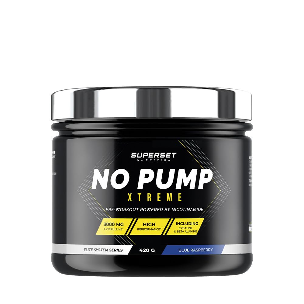 Propel your performance with NO PUMP XTREME (420G). Feel the power of a pre-workout designed for serious athletes. NO PUMP XTREME (420G) is enriched with specific ingredients to help you reach your goals, whatever the challenge. With an optimal dose of creatine, this supplement prepares you to give your best in every session. Performance enhancement: 3.3g of creatine monohydrate to boost your high-intensity workouts. Fatigue control: 3g of beta-alanine to reduce muscle fatigue and prolong your efforts. Optimized blood flow: 3g of L-citrulline to promote better blood flow for extreme workouts. Effective and complete preparation. Elevate your sessions with a formula that supports every aspect of your training. NO PUMP XTREME (420G) combines proven ingredients for unparalleled performance. Whether you're bulking or cutting, this pre-workout adapts to your needs. Stimulating caffeine: increases your endurance and reduces the perceived exertion for more effective workouts. Vitamin B3: helps reduce fatigue and supports optimal energy metabolism for visible results. Targeted formula: composed of key ingredients, each scoop provides essential support to push your limits. It also contains sweeteners, like most pre-workouts. Flavors for every taste: Mojito, Long Island Iced Tea, Piña Colada, Cherry Sour, Blue Raspberry. Savor the extreme freshness of this pre-workout. Don't compromise on taste to reach your goals. With NO PUMP XTREME, you'll enjoy irresistible flavors that make every serving enjoyable and motivate you to push your limits. Fresh flavors that transform each serving into a moment of pleasure. Enhanced motivation to push you to reach your goals, even during workouts. INGREDIENTS Mojito Ingredients: Micronized creatine monohydrate 24 , L-citrulline 21 , beta-alanine 21 , maltodextrin, taurine 6.4 , acid (citric acid), acidity regulators (sodium phosphate, potassium phosphates, magnesium phosphates), flavorings, anhydrous caffeine 1.4 , sweeteners (acesulfame K, sucralose), nicotinamide. Certified anti-doping, non-GMO and Halal. Ingredients Long Island Ice Tea: micronized creatine monohydrate 24 , L-citrulline 21 , beta-alanine 21 , maltodextrin, taurine 6.4 , flavourings, acidity regulators (sodium phosphate, potassium phosphates, magnesium phosphates), acid (citric acid), anhydrous caffeine 1.4 , sweeteners (acesulfame K, sucralose), colour (ammoniacal sulfite caramel), nicotinamide. Certified anti-doping, GMO-free, and Halal. Piña Colada Ingredients: Micronized creatine monohydrate 24 , L-citrulline 21 , beta-alanine 21 , maltodextrin, flavorings, taurine 6.4 , acidity regulators (sodium phosphate, potassium phosphates, phosphate). DIRECTIONS Take one 14g serving (2 scoops) in 400ml of cold water 30-45 minutes before training. Shake well and drink. Take one serving per day. SAFETY WARNING Precautions: Food supplements should be used as part of a healthy lifestyle and not as a substitute for a varied and balanced diet. Contains caffeine: 200mg per 14g. Do not exceed the recommended daily intake. Excessive consumption Sweeteners may have a laxative effect. Not recommended for children, teenagers, pregnant or breastfeeding women. Keep out of reach of children. Allergens: milk, eggs, soy, peanuts, tree nuts, celery, fish, crustaceans, mollusks, and foods containing sulfur dioxide. Storage: Keep tightly closed in a dry place between 5-30 C. Do not expose to heat, light, or humidity. See moreSuperset Nutrition - No Pump Xtreme (420gr) - PreWorkout - La référence des pré-workout intenses enrichie en créatine ! - Blue RaspberryDESCRIPTION DU PRODUIT DESCRIPTION DU PRODUIT Propulse tes performances avec le NO PUMP XTREME (420GR) Ressens la puissance d'un pré-workout conçu pour les athlètes sérieux. Le NO PUMP XTREME (420GR) est enrichi en ingrédients spécifiques pour t'aider à atteindre tes objectifs, quel que soit le défi. Avec une dose optimale de créatine, ce complément te prépare à donner le meilleur de toi-même à chaque séance.Amélioration des performances : 3,3 g de créatine monohydrate pour booster tes exercices de haute intensité.Fatigue maîtrisée : 3 g de bêta-alanine pour réduire la sensation de fatigue musculaire et prolonger tes efforts.Optimisation du flux sanguin : 3 g de L-citrulline pour favoriser un meilleur afflux sanguin, pour des entraînements extrêmes. Préparation Efficace et Complète Élève tes séances avec une formule qui soutient tous les aspects de ton entraînement. Le NO PUMP XTREME (420GR) combine des ingrédients éprouvés pour une performance inégalée. Que tu sois en phase de prise de masse ou de sèche, ce pré-workout s'adapte à tes besoins.Caféine stimulante : augmente ton endurance et diminue la perception de l'effort pour des entraînements plus performants.Vitamine B3 : aide à réduire la fatigue et soutient un métabolisme énergétique optimal, pour des résultats visibles.Formule ciblée : composé d'ingrédients clés, chaque scoop t'apporte un soutien essentiel pour dépasser tes limites. Il contient aussi des édulcorants comme la plupart des pré-workouts. Des parfums pour tous les goûts Mojito Long Island Ice Tea Piña Colada Cherry Sour Blue Raspberry Savoure l'Extrême Fraîcheur de ce Pré-workout Ne fais pas de compromis sur le goût pour atteindre tes objectifs. Avec NO PUMP XTREME, tu profites de saveurs irrésistibles qui rendent chaque dose agréable et te motivent à te dépasser.Des saveurs fraîches, qui transforment chaque prise en un moment de plaisir.Motivation renforcée pour te pousser à atteindre tes objectifs, même pendant les entra INGRÉDIENTS Ingrédients Mojito : créatine monohydrate micronisée 24 , L-citrulline 21 , bêta-alanine 21 , maltodextrine, taurine 6,4 , acidifiant (acide citrique), correcteurs d'acidité (phosphate de sodium, phosphates de potassium, phosphates de magnésium), arômes, caféine anhydre 1,4 , édulcorants (acésulfame K, sucralose), nicotinamide. Certifié 