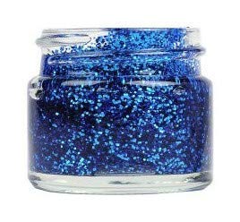 Blue glitter gel for hair or body. Do not use near the eyes.
