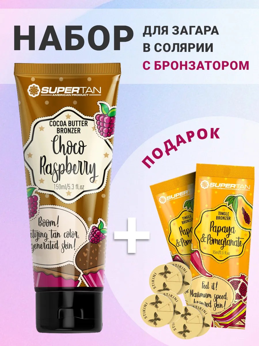 Крем для загара в солярии CHOCO RASPBERRY - усиленный бронзатор с маслом какао и витамином Е. Откройте для себя сладость загара! Супер активатор загара с тройным бронзирующим комплексом исполнит Вашу мечту о красивом бронзовом загаре. Масла ши, какао и кокоса отлично питают и тонизируют кожу, оказывают восстанавливающее действие, а витамин Е обеспечивает её регенерацию. Рекомендован для любого типа кожи. Подходит для загара в солярии и на солнце. Легкими круговыми движениями равномерно нанесите крем на кожу перед сеансом загара в солярии или под солнцем. Крем для солярия, средства для загара, крем для загара в солярии, крем с бронзатором, косметика для загара