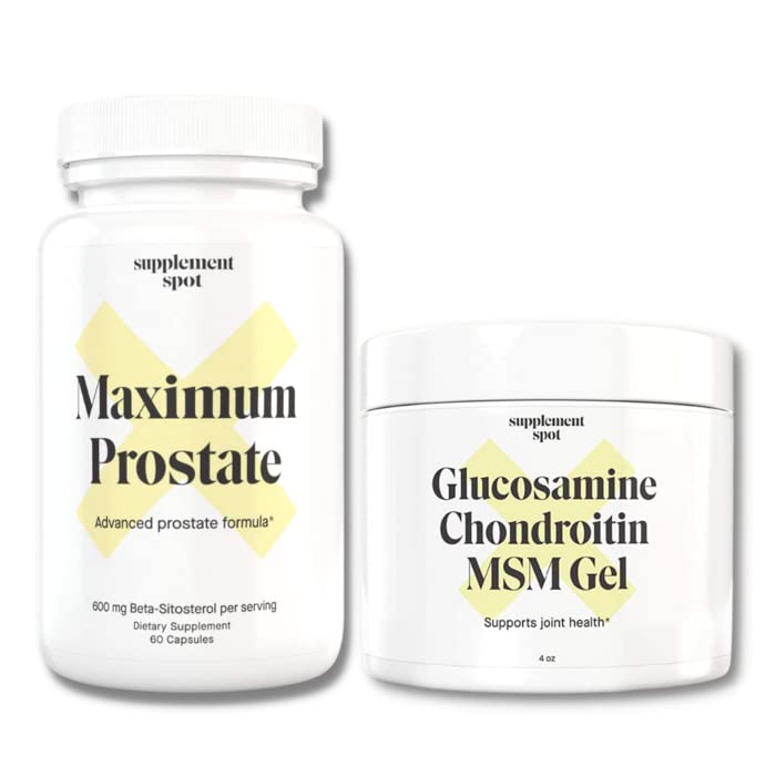LONG-TERM JOINT HEALTH: The joint relief gel for muscle pain is formulated for long-term joint health targets specific areas that need support. Plus, these best joint supplements for men help to relieve inflammation in muscles, joints and improves overall physical function. GLUCOSAMINE CHONDROITIN JOINT GEL: Supplement Spot's joint supplement is the best way to support maintain your joint health! This joint support supplement contains the right mix of all-natural ingredients that can best support joint health reduce inflammation. KEY BETA PROSTATE INGREDIENT: Men who take supplements that contain our key ingredient, 600 mg of Beta Sitosterol per serving, report that it promotes regulation for the prostate. Experience the freedom that comes with being able to control your body, including bladder emptying, a stronger flow, and fewer trips to the bathroom. NATURAL ESSENTIAL NUTRIENTS: A game-changer in men's health and wellness supplements. We use the best of herbal ingredients with Phytosterols, which are molecules from vegetables, fruits, legumes, nuts, and grains. These essential nutrients are key in promoting prostate health such as bladder control. SUPPORT HEALTHY PROSTATE FUNCTION: Our Maximum Prostate capsules are made with herbal compounds and vitamins that are enhanced with plant based Beta Sitosterol for maximum prostate support to help men feel healthy and young. Men with bloated and irritated prostates find comfort and relief in our prostate health supplements for men.