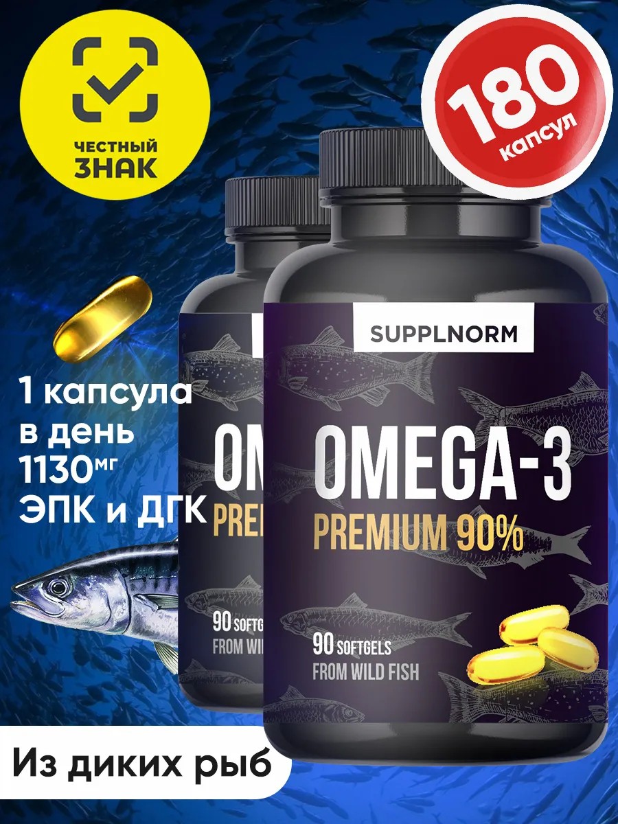 Омега 3 Премиум 90% концентрат 1130 мг ЭПК и ДГК в капсуле - это группа жирных кислот омега3 ПНЖК, организм не способен вырабатывать их самостоятельно. Омега 3 - это БАД для роста и развития, для нервной системы, для мозга, для сердца и сосудов, для иммунитета, для здоровья волос и кожи. Витамины тройная Омега 3 1000 мг - капсулы содержат рыбий жир из дикой рыбы: анчоусы, сардины, скумбрия. Как принимать: 1 капсула Омега-3 в день во время еды. Курс Omega 3 1000 мг - 1 месяц, при необходимости прием можно повторить. 1 банки Omega 3 90 капсул хватит на 3 месяца приема. Омега 3 1000мг - комплекс витаминов подойдет для взрослых, женщин, мужчин как для ежедневного приема, так и для сспорта. Особенно дозировку Омега-3 1000 мг в капсуле и более любят спортсмены. При регулярном приёме Омега-3 снижает уровень холестерина, очищает сосуды, нормализует работу щитовидной железы, сердца. Повышается сопротивляемость клеток повреждающим факторам, замедляется старение организма.