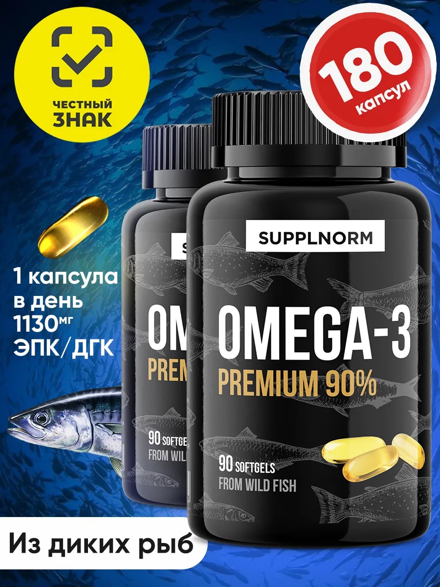 Омега 3 Премиум 90% концентрат 1130 мг ЭПК и ДГК в капсуле - это группа жирных кислот омега3 ПНЖК, организм не способен вырабатывать их самостоятельно. Омега 3 - это БАД для роста и развития, для нервной системы, для мозга, для сердца и сосудов, для иммунитета, для здоровья волос и кожи. Витамины тройная Омега 3 1000 мг - капсулы содержат рыбий жир из дикой рыбы: анчоусы, сардины, скумбрия. Как принимать: 1 капсула Омега-3 в день во время еды. Курс Omega 3 1000 мг - 1 месяц, при необходимости прием можно повторить. 1 банки Omega 3 90 капсул хватит на 3 месяца приема. Омега 3 1000мг - комплекс витаминов подойдет для взрослых, женщин, мужчин как для ежедневного приема, так и для сспорта. Особенно дозировку Омега-3 1000 мг в капсуле и более любят спортсмены. При регулярном приёме Омега-3 снижает уровень холестерина, очищает сосуды, нормализует работу щитовидной железы, сердца. Повышается сопротивляемость клеток повреждающим факторам, замедляется старение организма.