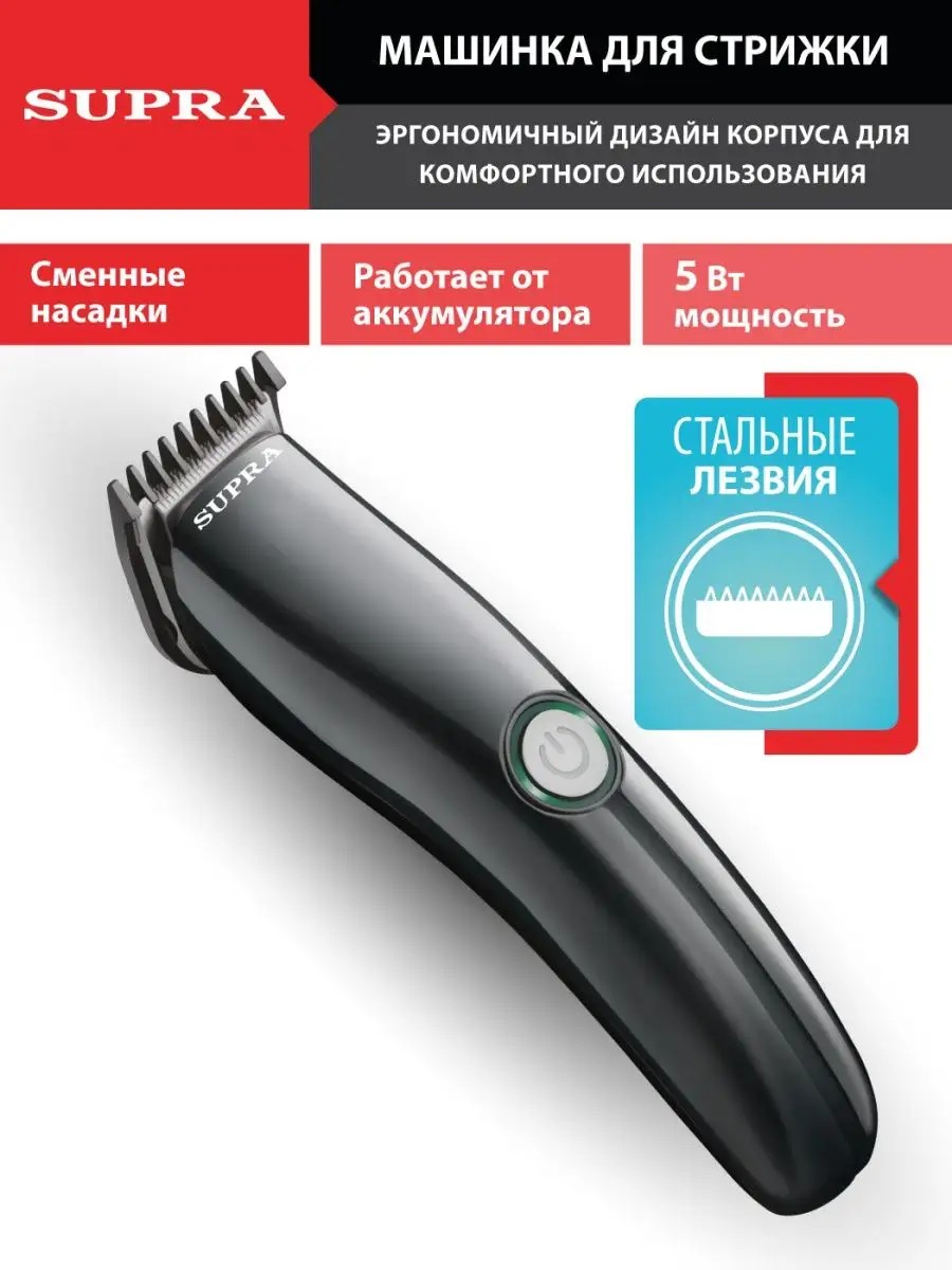 Профессиональная машинка триммер для стрижки SUPRA HCS-212 беспроводная аккумуляторная с лезвием из высококачественной нержавеющей стали, 4 съемными насадками 3, 6, 9, 12 мм имеет эргономичный дизайн корпуса, скрывающий аккумуляторную батарею 600 мА. Машинку удобно держать в руке благодаря легкой конструкции рукоятки. Ей легко управлять c помощью кнопки вкл/выкл. Батарея заряжается с помощью шнура питания с адаптером в течение 8 ч. Время непрерывной работы от встроенной батареи 45 минут. Индикатор готовности прибора к работе. Съемные гребни устанавливают длину стрижки в 3, 6, 9, 12 мм и позволяют экспериментировать со стилем. Подходит для интимной стрижки. Машинка будет полезна тем, кто обучается парикмахерскому мастерству. Универсальный подарок мужчине, ценящему удобство и комфорт, на любой праздник. Лучший подарок на 23 февраля для создания прически дома, как в барбершоп парикмахером. Входит в топ лучших подарков мужу, папе, брату, дедушке, любимому, коллеге. Не уступает аналогичным машинкам триммерам panasonic braun remington rowenta xiaomi moser wahl philips мозер филипс pro vitek polaris babyliss. Помимо этого наша машинка будет прекрасным помощником для стрижки собак.
