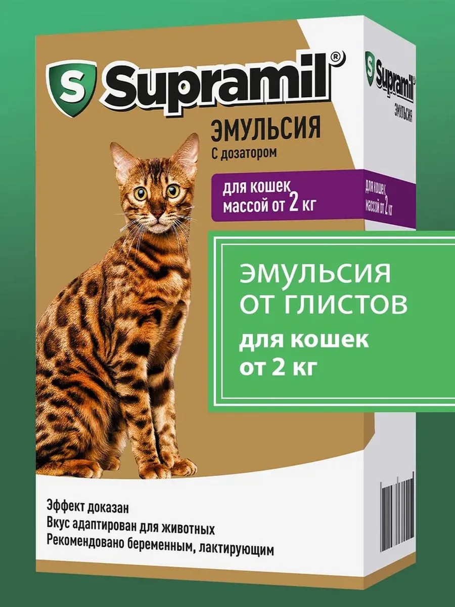 Supramil emulsion - the world's first broad-spectrum anthelmintic emulsion for cats and dogs, intended for the treatment and prevention of roundworm and tapeworm infestation, as well as dirofilariasis.