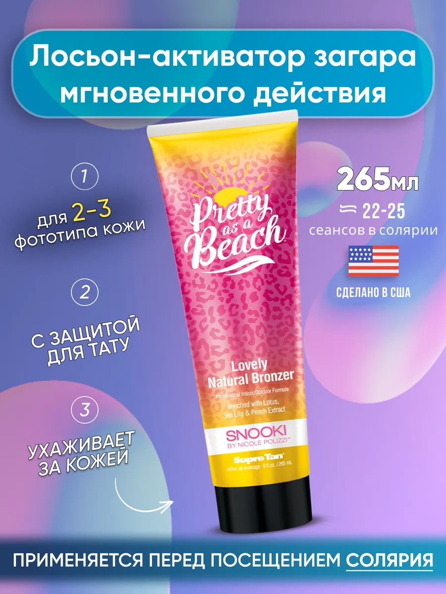 Представьте: роскошный загар, который подчеркивает красоту вашей кожи и при этом бережно сохраняет яркость ваших татуировок. Именно такой результат дарит вам инновационный пляжный лосьон-корректор Snooki Pretty as a Beach!