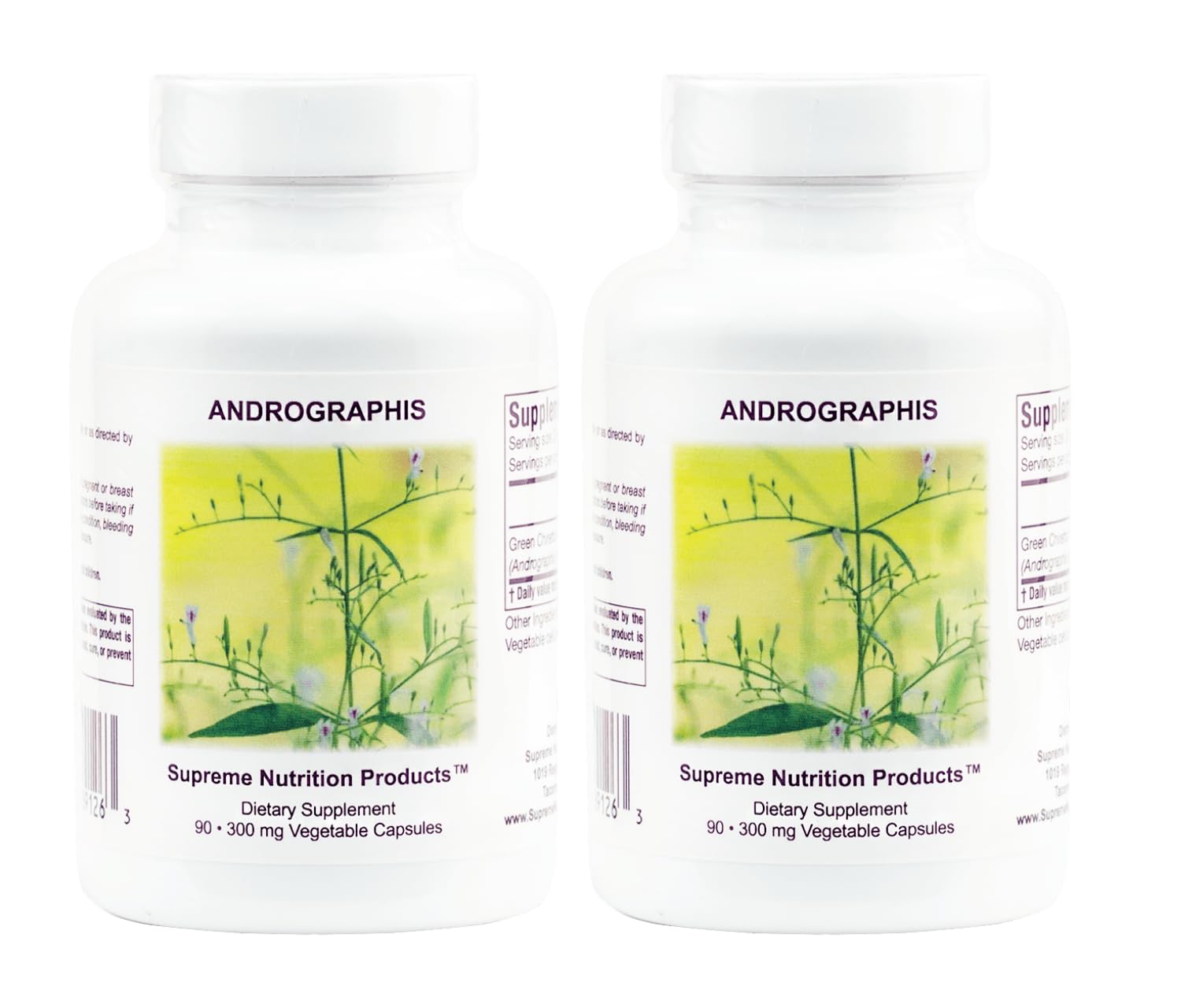 100 SATISFACTION GUARANTEE - This product is backed by a 30-day 100 Satisfaction Guarantee. cGMP STANDARDS - Supreme Nutrition goes above and beyond Current Good Manufacturing Practice standards. LABORATORY TESTED - Raw materials pass both laboratory and clinical evaluations. PURE HERB - Like all Supreme Nutrition products, there are no fillers, binders, flow agents, or other substances added in the encapsulation process. ANDROGRAPHIS - 100 Pure Andrographis paniculata (Green Chiretta).