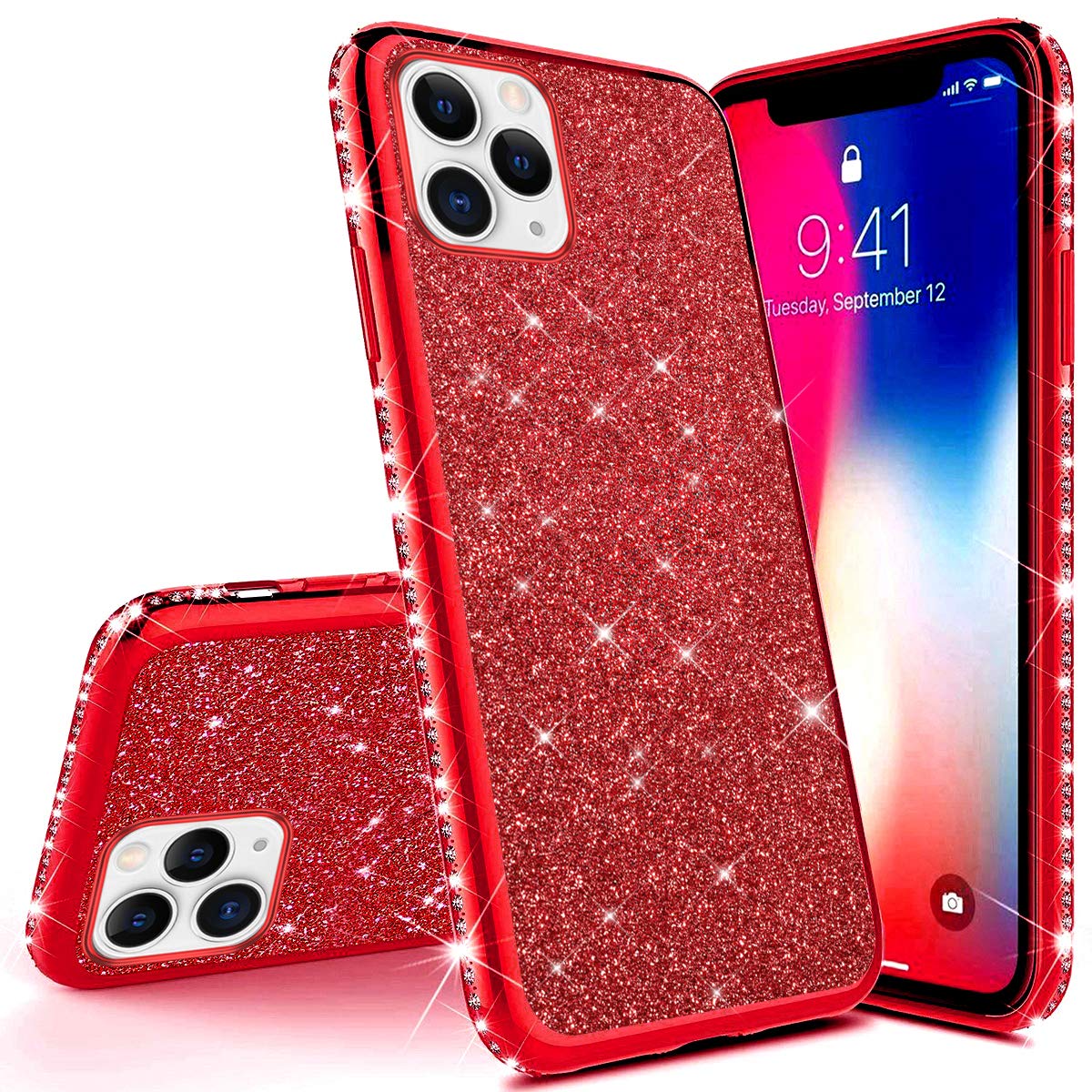 Surakey compatible with iPhone 12/iPhone 12 Pro case blinish glossy glitter shell. Diamond mobile phone case Transparent TPU silicone protection cell phone case Case protective cover for iPhone 12/12 Pro red
