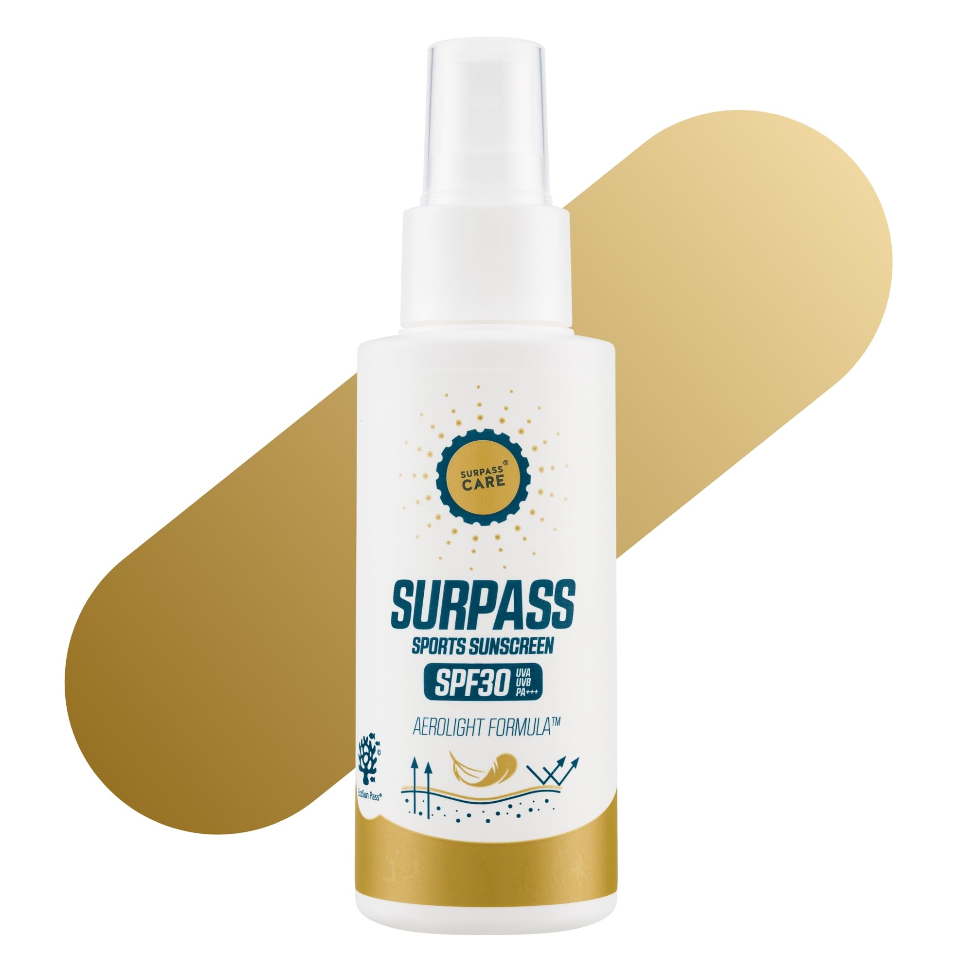 NO CONTROVERSIAL FILTERS: Formulated without octocrylene, homosalate, or benzophenone—chemical UV filters currently under investigation for their potential endocrine-disrupting effects. Our conscious formulation prioritizes athlete safety, skin health, and environmental responsibility. Vegan and water-resistant for all conditions: This vegan sunscreen spray remains effective in contact with water—perfect for swimming, golfing, running, or cycling, whether in sun, rain, or high humidity. Tested where it matters: SPF 30 protection proven in real-world conditions, not just in the lab. Reliable sun defense when it matters most. Invisible comfort with AeroLight: Experience unparalleled comfort with our Invisible Dry Oil Spray, featuring the advanced AeroLight formula. This ultra-lightweight dry oil absorbs instantly, leaving an invisible, lightweight finish that lets your skin breathe without clogging pores, ensuring a clean feeling. Designed for endurance: Formulated for cyclists, runners and athletes, SURPASS resists sweat, water and remains effective even during prolonged effort.