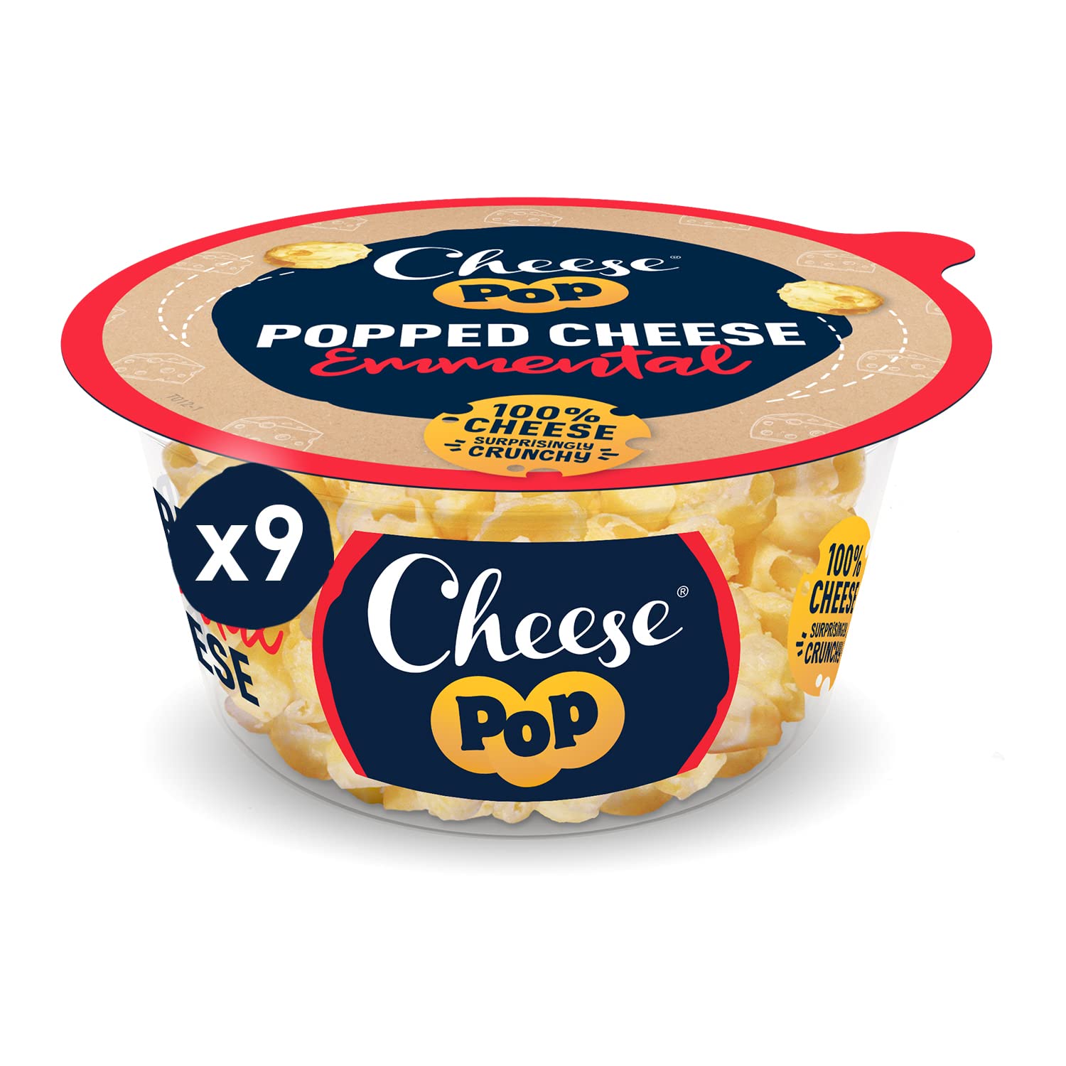 Cheesepop Überraschenderweise Knusprig & Luftig, Geringfügig Glatt & Nussig | Eiweißreiche | 100% Emmental Käse Geknallt Snack, 9x65g Emmental 9x65g