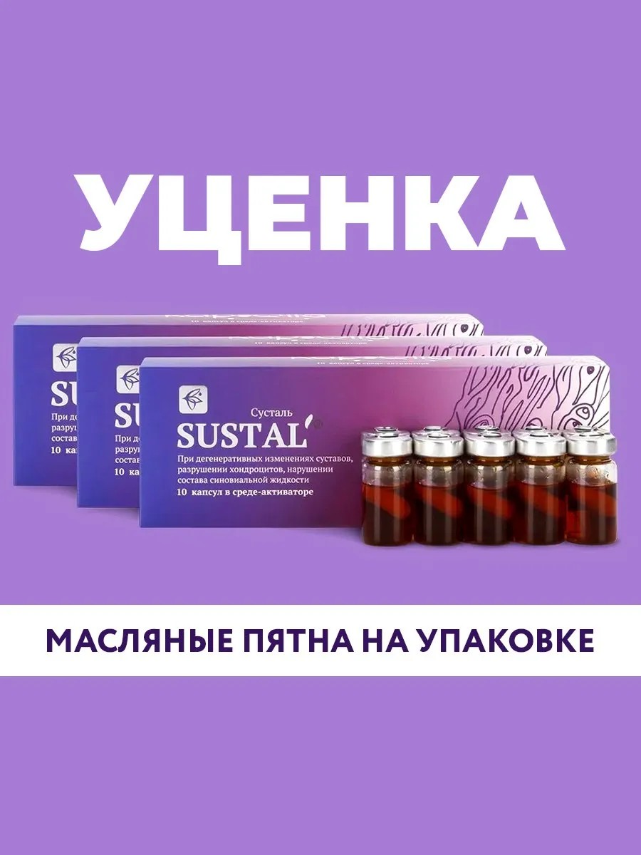 Выраженное снижение боли на третий день начала курса Sustal для суставов. Бокс сусталь на весь курс. Даем гарантию на целостность ампул так как многократно усилили упаковку. Биологически активный комплекс направленный на восстановление дефицитов тканей суставов за счет чего суставной аппарат восстанавливается естественным образом в кратчайшие сроки. Бад содержит хондропротекторы глюкозамин и хондроитин которые регулируют процессы обмена в тканях ускоряя восстановление в 10 раз. Комплекс сашера мед натуральный препарат для связок, хрящей всего костного аппарата принцип лекарственного действия которого обусловлен уникальным подбором нативных веществ которые сохраняются и полностью усваиваются благодаря среде активатору. Продукт рекомендуется как спортпит-спортивное питание при повышенных нагрузках руки ноги позвоночник так как влияет на все хрящи связки фасции организма. Также комплекс оказывает действие на эндокринную систему нормализует гормональный фон улучшает суставную жидкость и обменные процессы в костной ткани. Sustal KapsOila применяется при артритах артрозах травмах возрастных изменениях дедушке бабушке маме папе спортсменам работе на ногах.
