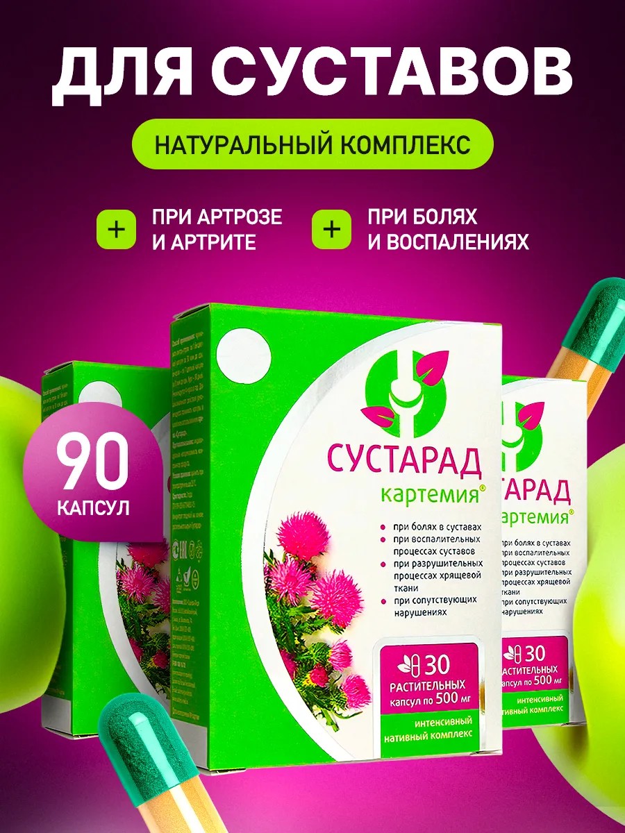 | Комплектация | БАД Сустарад Картемия 30 капсул - 3 упаковки; инструкция |