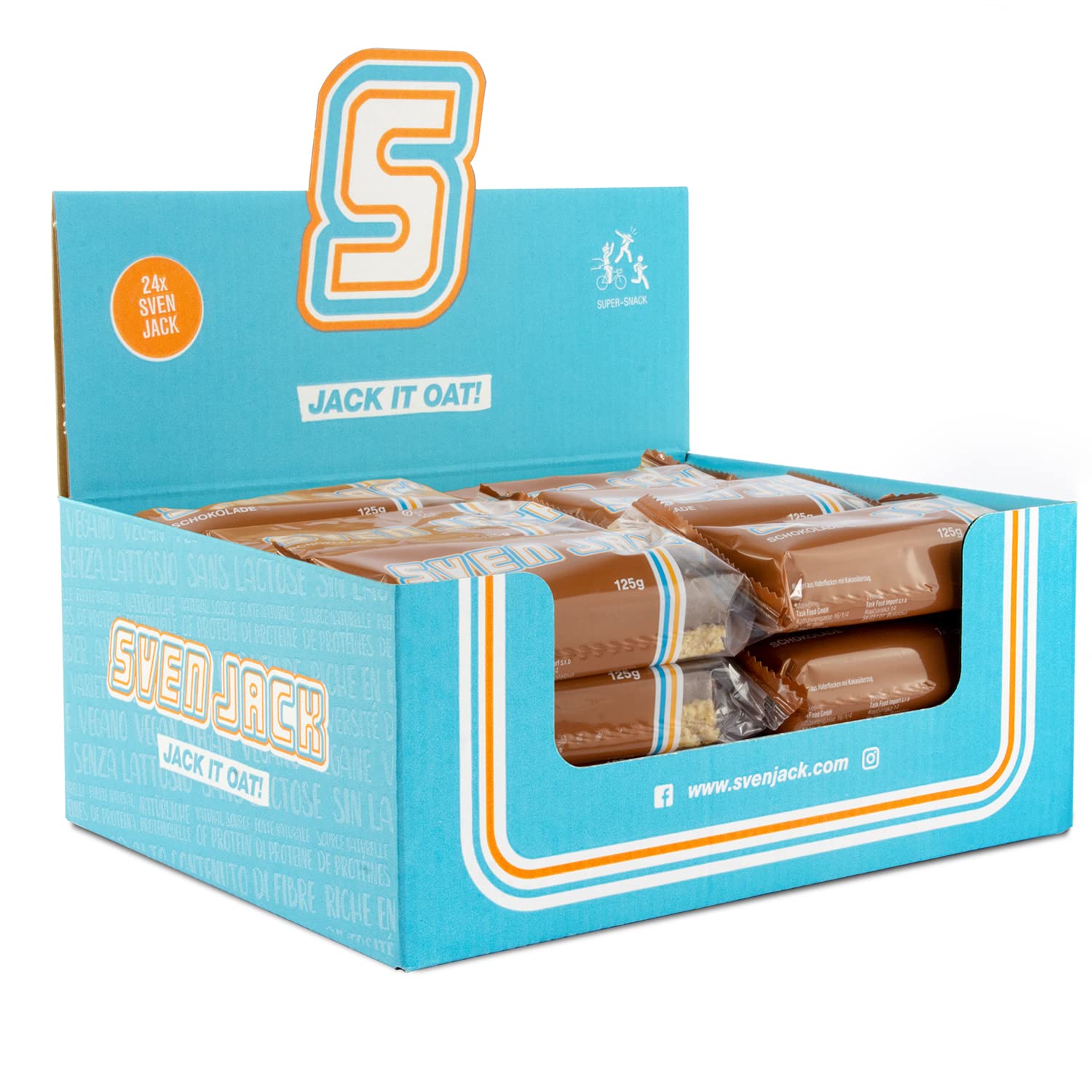 Superfood vegan snack made with oat flakes – a natural source of energy. High in calories and energy – perfect before or after a workout. Hearty and convenient – ??ideal for breakfast or a snack. Always with you on the go – perfect for travel and outdoor activities. High in fiber and protein, and lactose-free – ideal for a balanced diet.Snack végétalien superalimentaire à base de flocons d'avoine – source naturelle d'énergie. Riche en calories et en énergie – parfait avant ou après l'entraînement. Copieux et pratique – idéal pour le petit-déjeuner ou une collation. Toujours avec vous lors de vos déplacements - parfait pour les voyages et les activités de plein air. Riche en fibres, en protéines et sans lactose – idéal pour une alimentation équilibrée.SvenJack Oat Bar Chocolate 24X125g