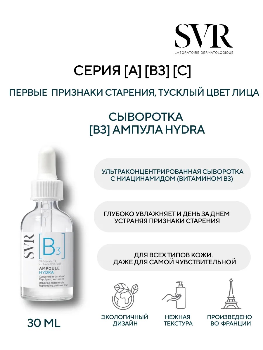 Ампула [B3] Гидра – сыворотка с высокой концентрацией витамина В3 успокаивает и повышает упругость кожи. В сочетание с тремя видами гиалуроновой кислоты (средней, высокой и очень высокой) интенсивно увлажняет кожу и удерживает влагу в слоях эпидермисе.