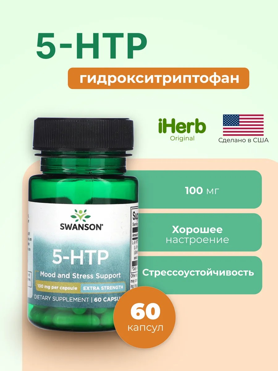 Swanson 5-HTP — это натуральный источник 5-гидрокситриптофана, аминокислоты, необходимой для синтеза серотонина — «гормона счастья». 5-HTP способствует улучшению настроения, снижению уровня стресса и поддержке здорового сна.