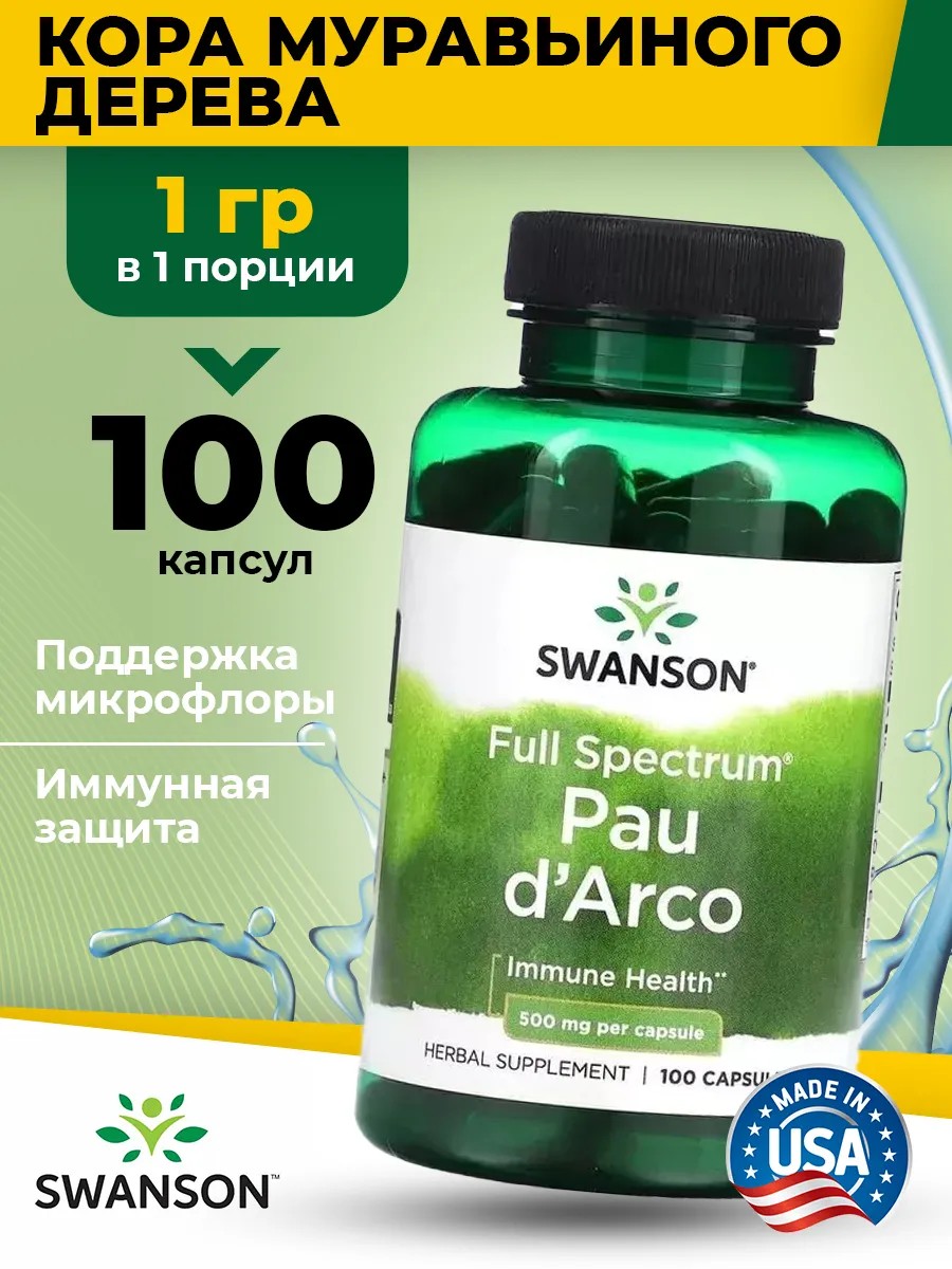 swanson Кора муравьиного дерева капсулы Pau D`Arco 500 mg, 100 caps