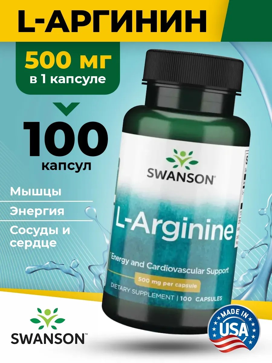 Swanson, L-Arginine, 500 mg, 100 Capsules. A high-quality dietary supplement that is a valuable source of the amino acid L-arginine. It is available in easy-to-swallow capsules, designed for athletes and people who want to supplement their diet with this valuable compound. Each convenient capsule contains 500 mg of free L-arginine. This amino acid supplement lowers blood cholesterol and normalizes blood pressure (arterial and intraocular). It prevents heart problems and clogged arteries, and plays an important role in the dilation of blood vessels. It promotes detoxification of the liver and kidneys. It stimulates the production of growth hormone. It promotes a more rapid increase in endurance and physical strength, and builds muscle mass. It helps improve energy and mood, and improves memory and attention. Actively involved in reproductive function, it is used to enhance libido and testosterone production, thereby positively affecting potency and erectile function. It promotes tissue repair (wounds, tendon strains, bone fractures), and enhances protein synthesis for muscle growth and weight gain. It is also involved in fat burning processes, converting weight into energy, helping maintain a healthy figure and boost energy levels. The amino acid arginine is responsible for protein synthesis and participates in the formation of nitric oxide, ensuring the normal functioning of all organs in the body. This natural product is intended for adult men and women. It contains ultra-powerful and effective ingredients that help comprehensively maintain proper nutrition and balance in the body. This complex is specifically designed to support immunity and restore health and beauty to people of all ages. The excellent formula inside the jar is the basis for maintaining ultra-balance and high energy levels in the body, necessary for an active lifestyle and athletic training. This product is suitable for high-performance athletes, sports nutritionists, and those on a healthy diet. This professional dietary supplement will help maintain a balance of nutrients and vitamins. It is an indispensable aid for anyone striving for a healthy lifestyle, active sports, and a rapid boost in immunity. Rebalance your lifestyle with Swanson ARGININE and enjoy all its benefits. DIRECTIONS: Take 1 capsule 1-2 times daily with water. WARNINGS: Consult a physician before using dietary supplements if you are undergoing treatment for a medical condition, or if you are pregnant or breastfeeding. Store in a cool, dry place. This product is not a medicine.