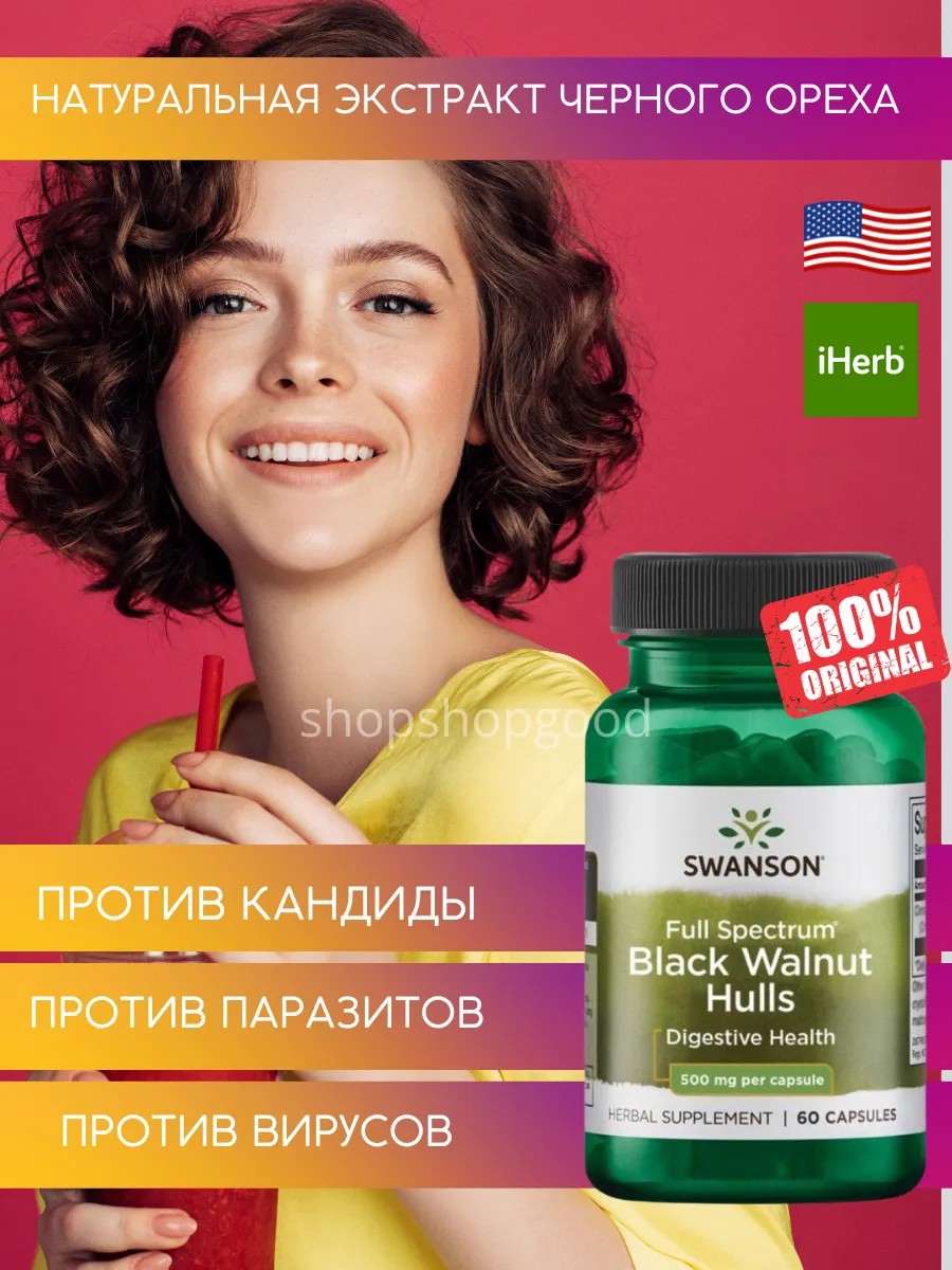 Swanson Скорлупа черного ореха 500 мг, 60 капсул Black walnut антипаразитарный с комплексным действием способствует очищение организма здоровье человека. Основные компоненты добавки помогают в борьбе против глистов, в очищение сосудов, избавиться от прыщей на лице взрослому. Бад полезен для микрофлоры кишечника и имеет желчегонный эффект.