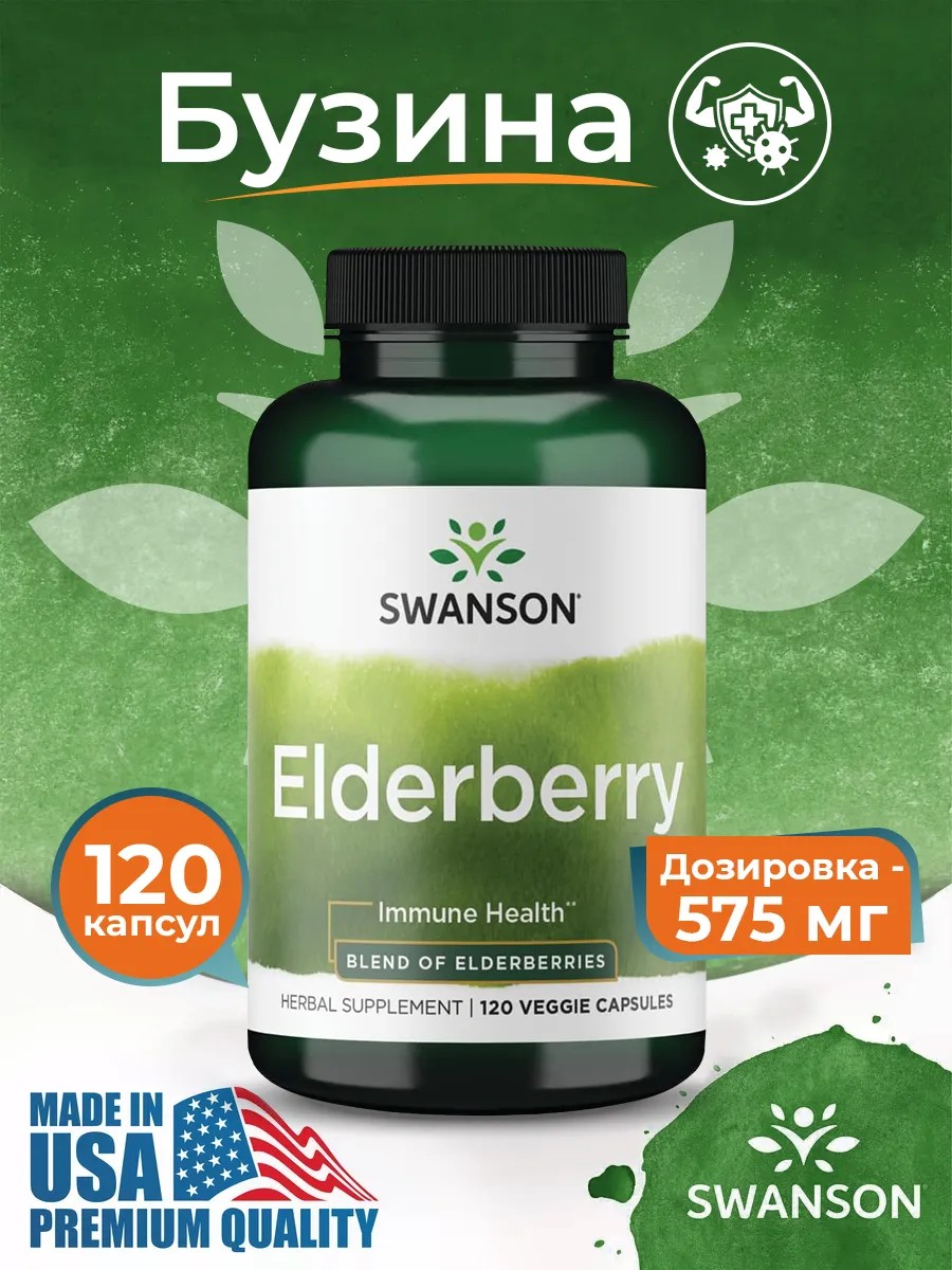 Swanson Ягоды бузины, Elderberry, бузина 120 капсул