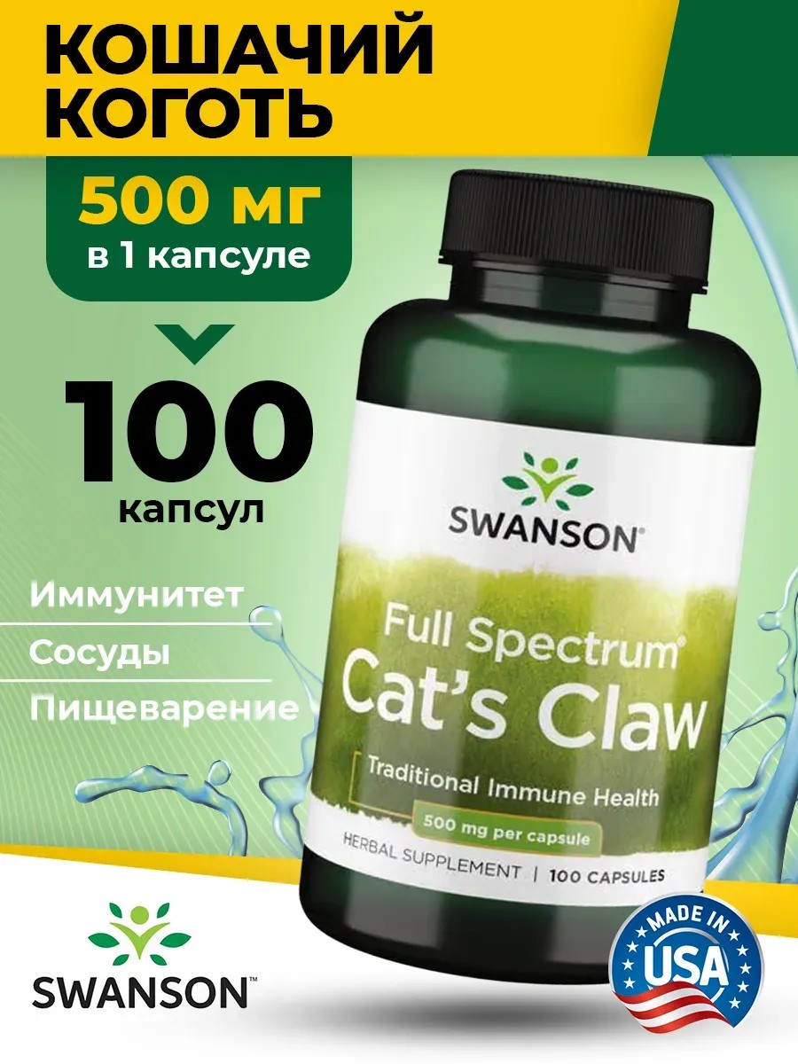 swanson Кошачий коготь капсулы 500 мг для иммунитета, ЖКТ и суставов