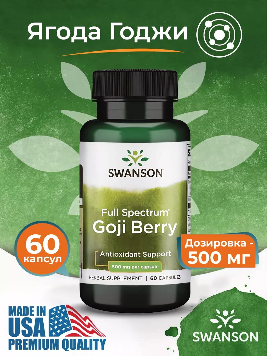Swanson Ягода Годжи 500 мг витамины 60 капсул
