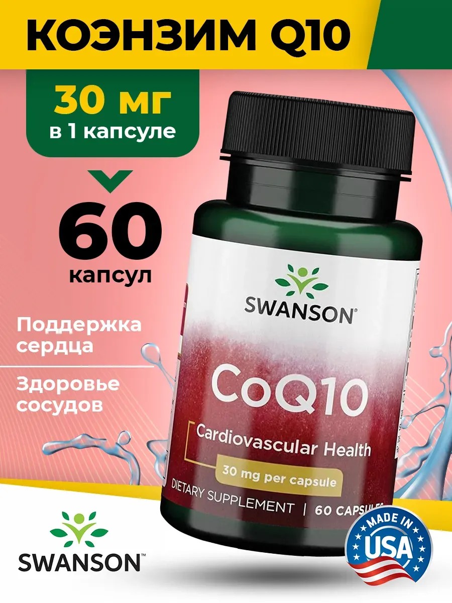 Swanson, Coenzyme Q10, 30 mg, 60 Capsules, Swanson, CoQ10, 30 mg, 60 Capsules. This high-quality dietary supplement is a source of coenzyme Q10. The product is intended for conscious consumers looking to supplement their daily diet with this valuable compound. It can be present in a reduced form, in which case it is called ubiquinol, or in an oxidized form, called ubiquinone. Coenzyme Q10 (ubiquinone) is an antioxidant compound found in mitochondria, where energy is produced, and the highest concentration of this substance is observed in the cells of the heart muscle, liver, and kidneys. Coenzyme Q10 prevents cholesterol oxidation and the development of atherosclerosis, improves heart and vascular function, and supports brain health and functionality. Coenzyme Q10 is a unique trace element that plays an important role in the human body for energy production. The body can synthesize this substance on its own, but with age, this ability declines, requiring specialized nutrition and supplements. CoQ10 is a true boost of energy and strength for your body. It acts as a reliable protector, combating the effects of stress and improving memory. Taking the supplement helps maintain beautiful skin and hair, making your ligaments as strong as steel chains. Each capsule is packed with vitamins that help reduce wrinkles and hair loss, as well as improve the condition of your nails. Coenzyme Q10 slows the aging process of muscles, blood vessels, and skin. Coenzyme Q10 improves blood flow and protects blood vessels from damage caused by oxidized cholesterol molecules, and reduces the accumulation of arterial plaque. The complex supports bone structure and is responsible for bone and joint health. Thanks to CoQ10, you will feel a surge of energy and see weight loss results without putting unnecessary pressure on your body. This natural anti-aging supplement is designed for adult men, women, and girls. This capsule set will help comprehensively support diet and proper nutrition. This vitamin complex is designed to support growth and strengthen the immune system, restoring health and beauty in people of all ages. The superior formula inside the jar is the foundation for maintaining high energy levels, essential for an active lifestyle and athletic training. This product is suitable for athletes, dietary, and sports nutrition (sports nutrition). This professional dietary supplement, Coenzyme Q10, will help maintain balance and increase energy throughout the day, and you'll feel a noticeable increase in weight. Directions: Take 1 capsule one to three times daily with meals and water. Warning: Consult a physician before using dietary supplements if you are undergoing treatment for any medical condition, or if you are pregnant or breastfeeding.
