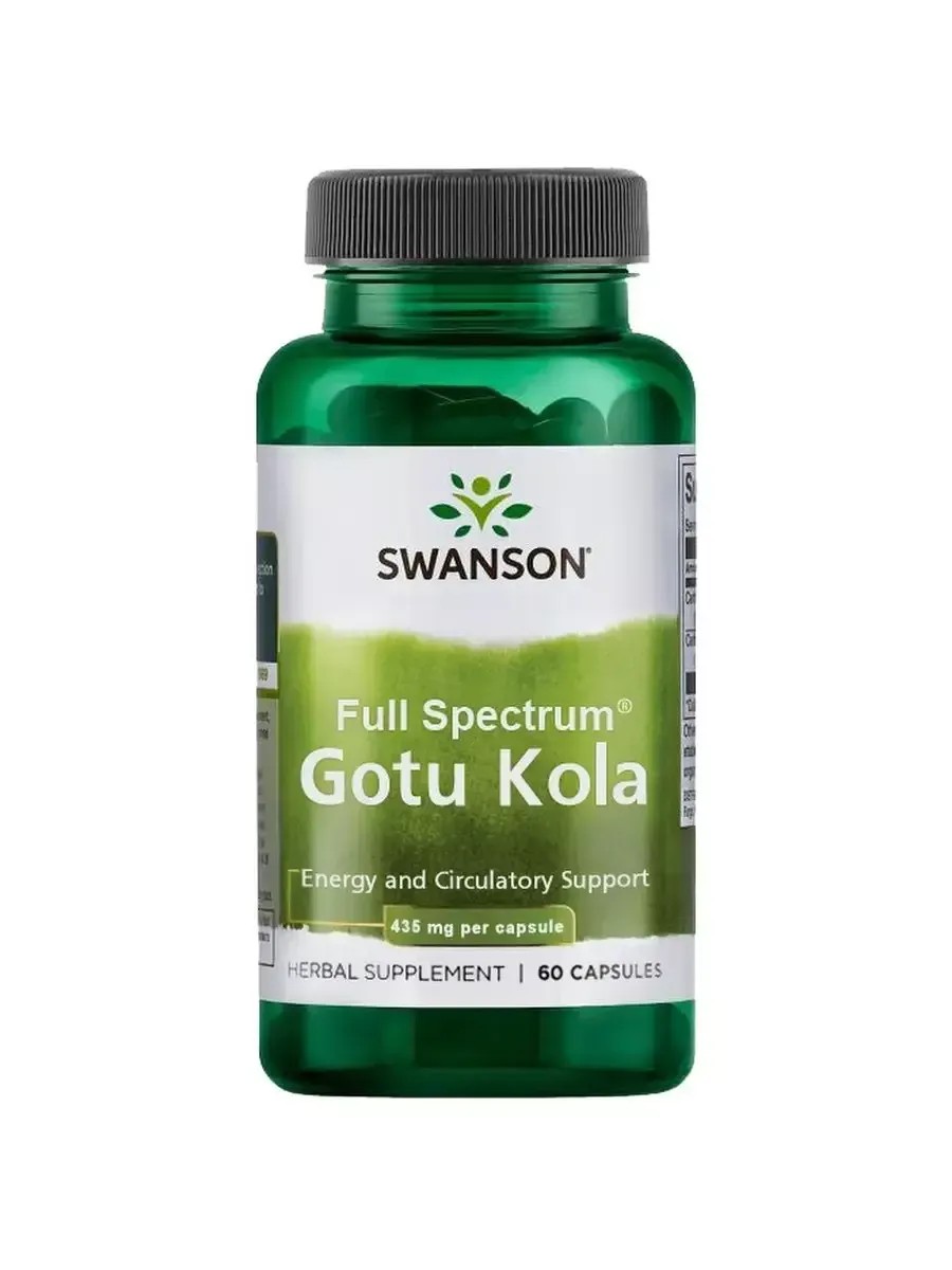 Свансон, Готу Кола полного спектра 435 мг, 60 капсул, Swanson, Full Spectrum Gotu Kola 435 mg, 60 Capsules – это высококачественный источник уникального растения Centella asiatica, которое на протяжении многих веков называли «травой памяти». Готу кола (центелла азиатская, или щитолистник) издавна используется в медицине благодаря своим полезным свойствам. Также ее называют растением долголетия, она помогает укрепить иммунитет, улучшить память и концентрацию, повысить устойчивость к стрессам. Каждая капсула содержит 435 мг чистого порошка готу кола. Капсулы с экстрактом готу колы обладают антиоксидантными свойствами, защищая клетки организма от вредного воздействия свободных радикалов. Препарат обладает способностью стимулировать кровообращение естественным образом и стимулировать жизненные силы организма. Комплекс поддерживает здоровье сердца и сосудов, здоровый кровоток и кровообращение, общий тонус. Он способствует расширению сосудов, может выступать профилактикой варикозу и заболеваниям, связанным с застоем крови. Пищевая добавка благотворно влияет на сердечно-сосудистую систему, на нервную систему, обладает омолаживающим действием, помогает при заболеваниях кожного покрова. Центелла азиатская может стимулировать выработку коллагена и эластина, что делает его полезным для поддержания эластичности и упругости кожи. Она содержит различные витамины, кислоты и другие компоненты, которые способствуют синтезу collagen, разглаживанию морщин и омоложению тканей. Оно включает множество полезных соединений, которые оказывают выраженное воздействие когнитивные функции головного мозга, умственную энергию и бодрость. Готу Кола предотвращает разрушение ацетилхолина, а также увеличивает уровень серотонина, дофамина и норэпинефрина. Биодобавка улучшает работу нервов, повышает защиту нервных тканей от стресса и окислительных процессов, снижает риски появления депрессий и улучшает настроение. Натуральный продукт является мощным ноотропом. Он нормализует мозговое кровообращение и внутричерепное давление, помогает справиться с болями головы. Также повышает способности ума, совершенствует память и концентрацию внимания. Растительный экстракт обладает свойствами адаптогена: укрепляет иммунитет и повышает способность к обучению. Эффективное средство разработано для комплексного укрепления и восстановления здоровья и красоты взрослых людей. Превосходная формула внутри баночки, основа для поддержания баланса и роста энергии для активной жизни. Товар подходит для сильных спортсменов, диетического, правильного и спортивного питания (спорт пит). Профессиональный препарат станет vitamin подарком для рациона мужчин и женщин разных возрастных групп, желающих получать максимум пользы от потребляемых продуктов и сохранить здоровую форму. ПРИМЕНЕНИE: по 1 капсуле в день с едой и водой или готовьте в виде чая. ПРЕДУПРЕЖДЕНИЯ: Проконсультируйтесь с врачом перед применением пищевых добавок, если вы проходите курс лечения, а также в период беременности и лактации.