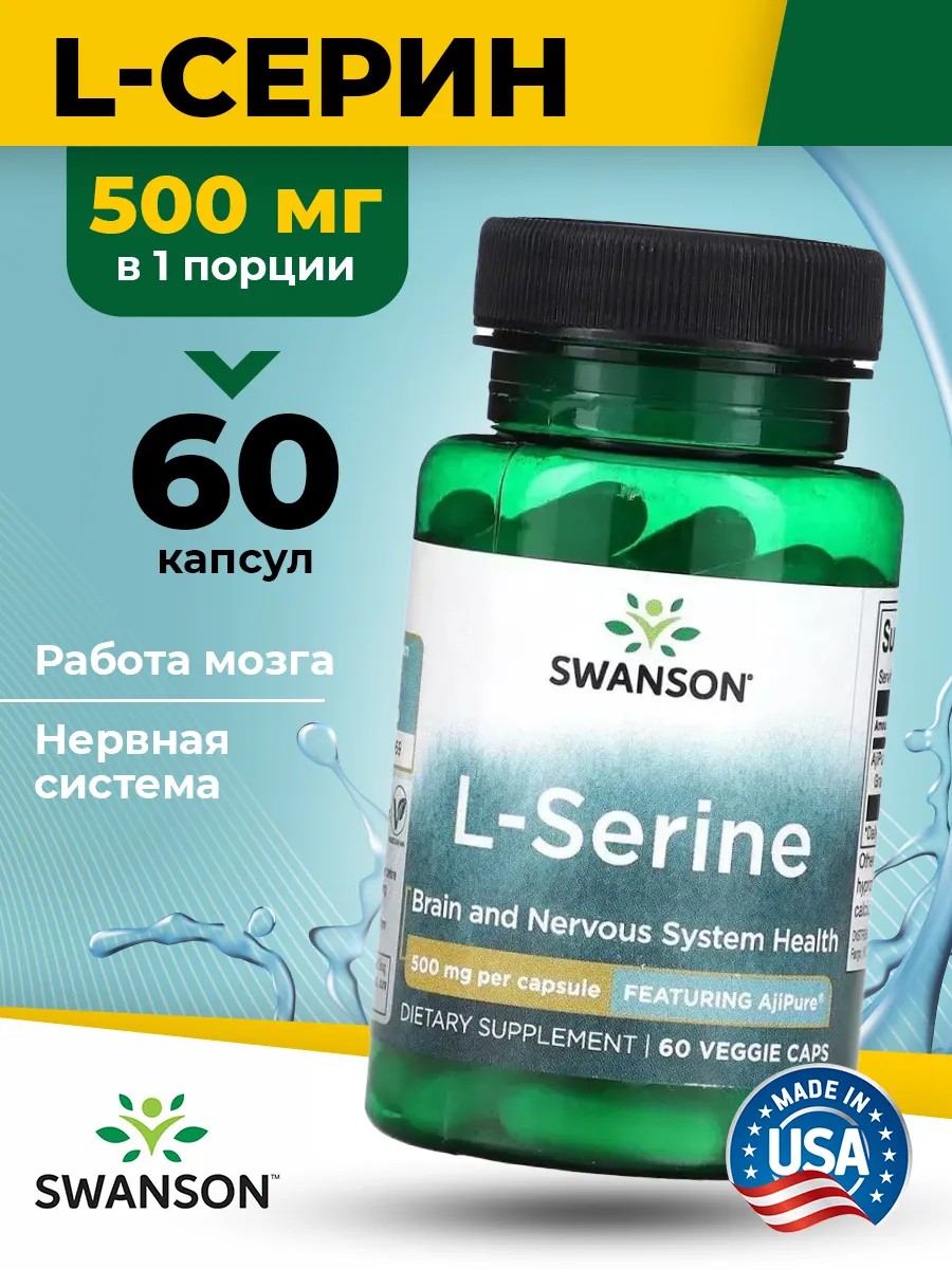 swanson L-Серин Аминокислота L-Serine 500 мг, 60капсул для мозга