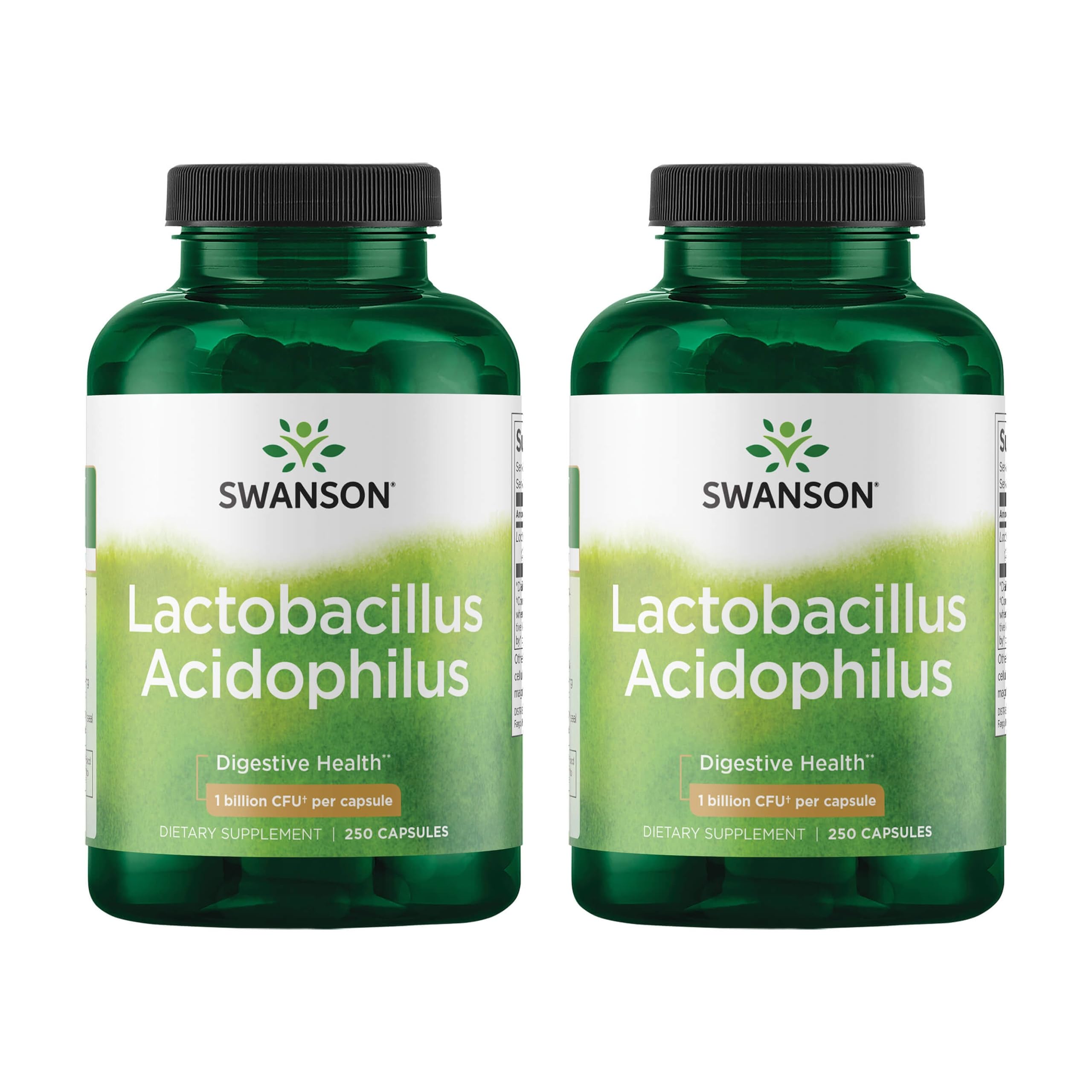 Swanson Lactobacillus Acidophilus - Probiotic Supplement Supporting Digestive Health with 1 Billion CFU Per Capsule - Promotes Bowel and GI Tract Health - (250 Capsules) 2 Pack