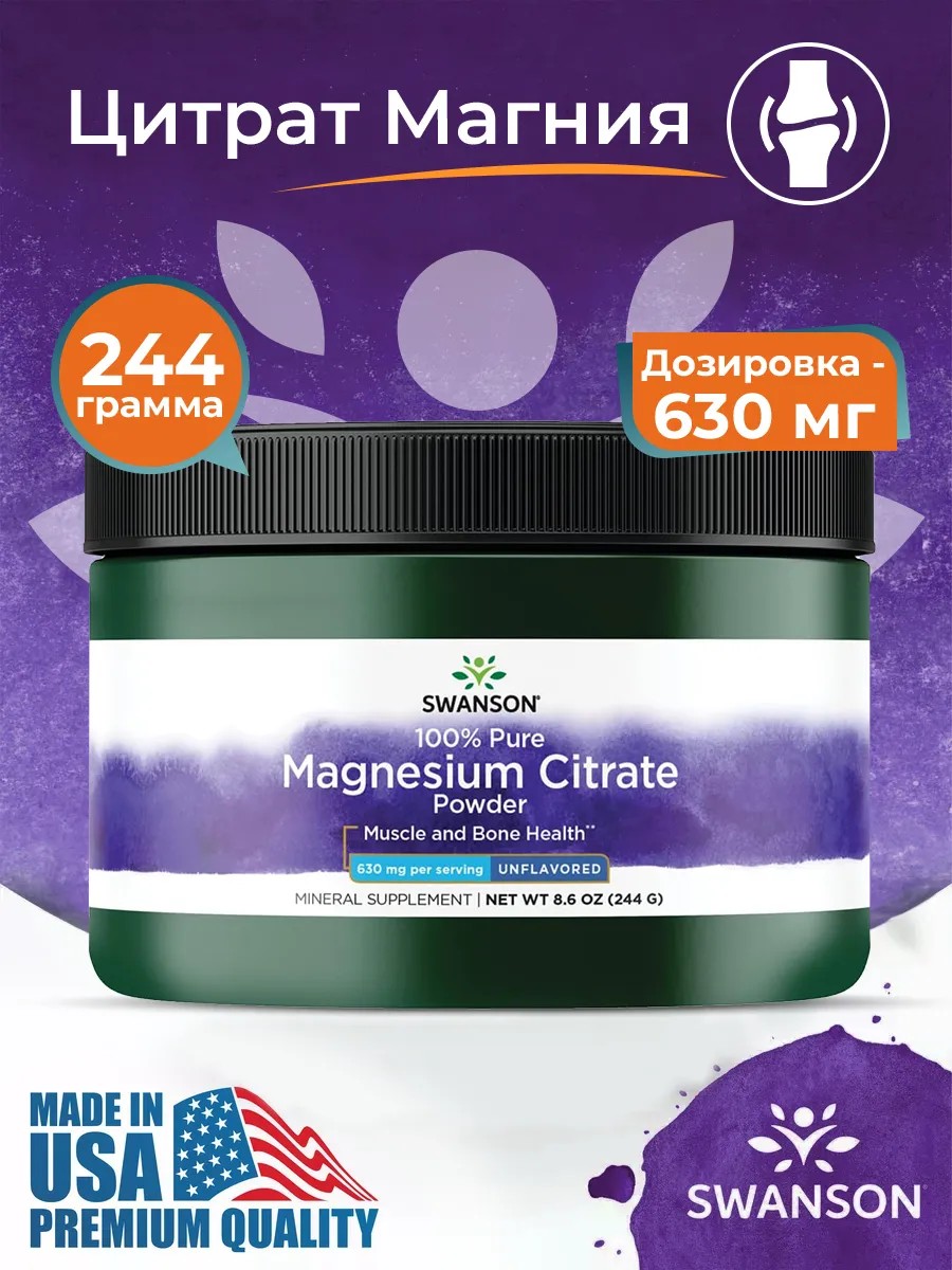 Swanson Цитрат магния, чистый порошок 630 мг 244 грам