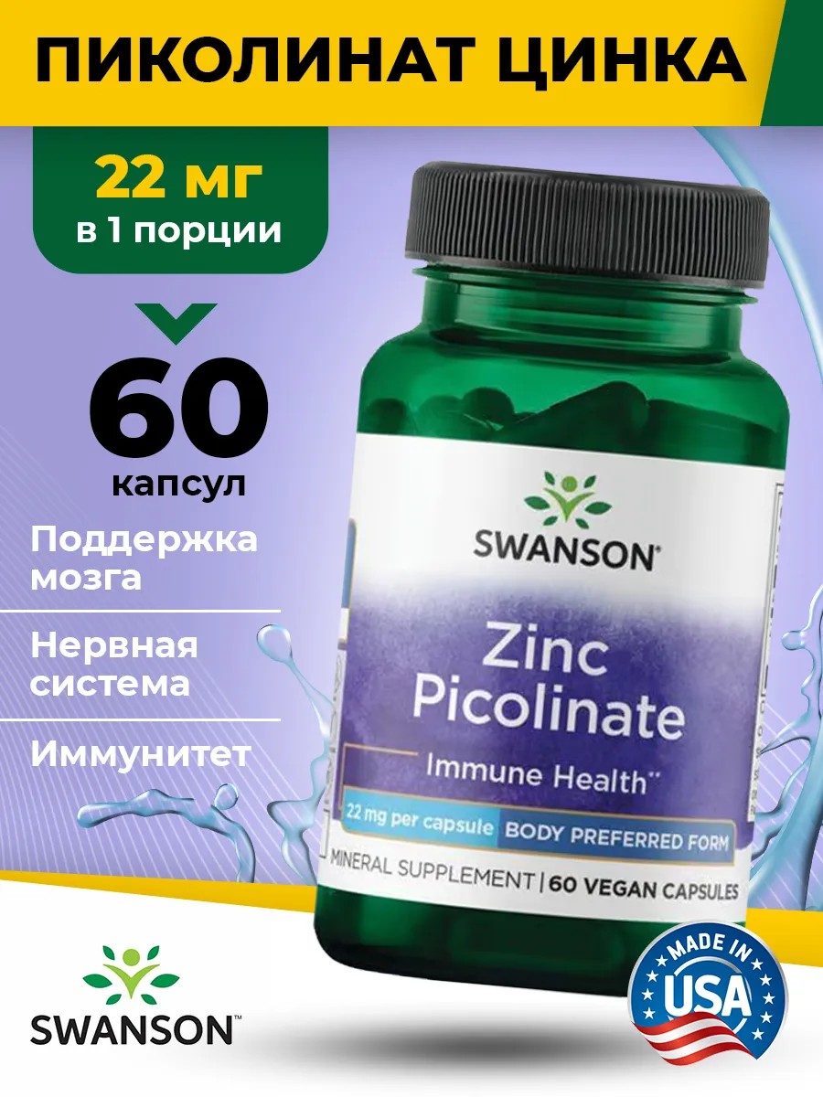 Swanson Цинк пиколинат 22мг Zinc Picolinate 60 капсул для иммунитета