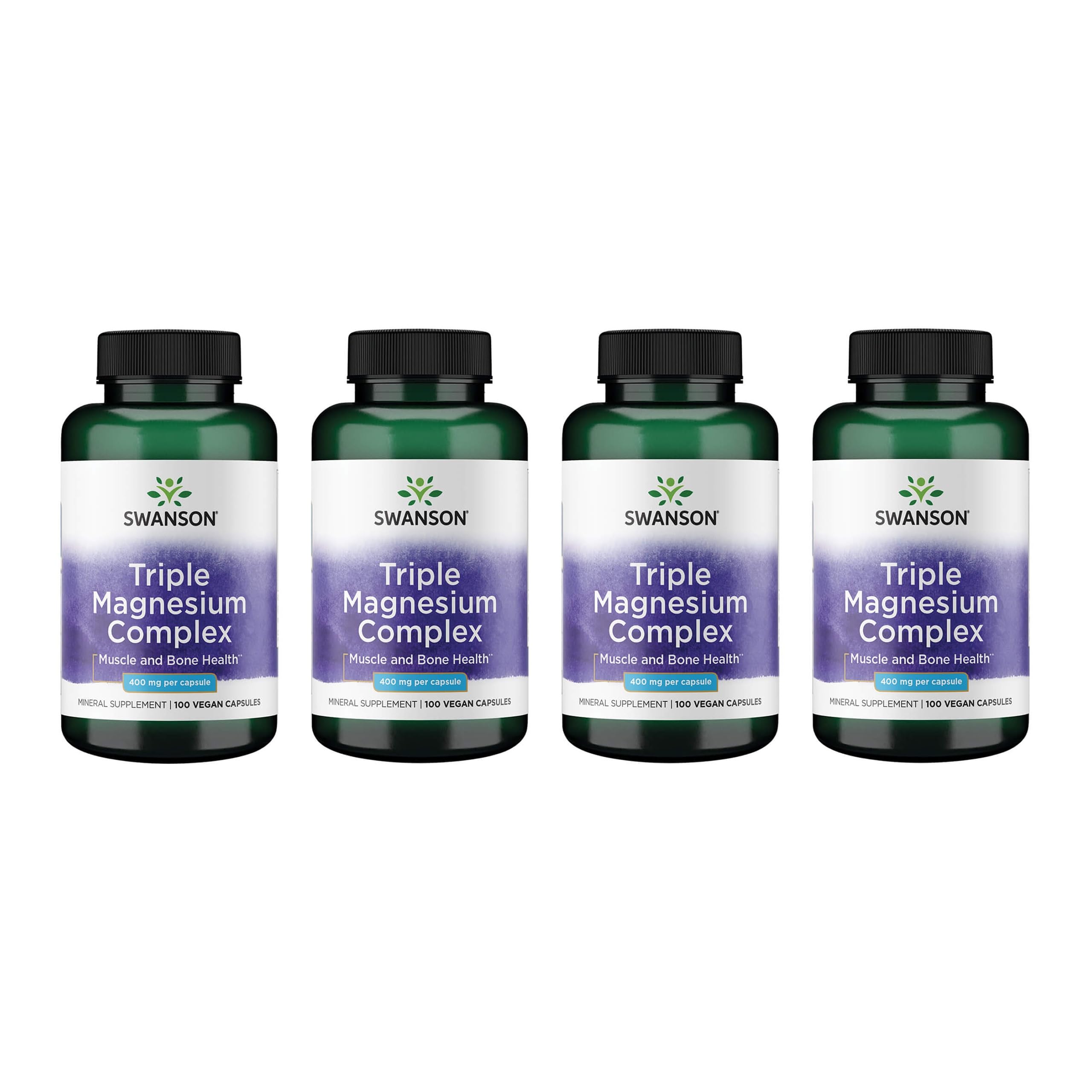 Swanson Triple Magnesium Complex - Mineral Supplement - Natural Support - Featuring Citrate, Oxide & Aspartate - (100 Capsules, 400mg Each, 4 Pack)