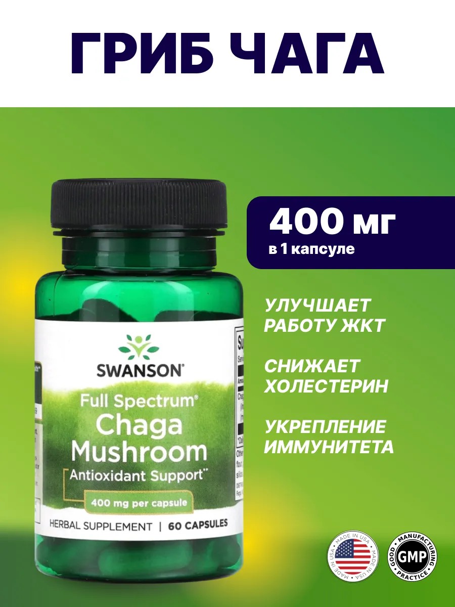 Swanson USA Swanson (USA) Full Spectrum Chaga Mushroom 400 мг 60 капс