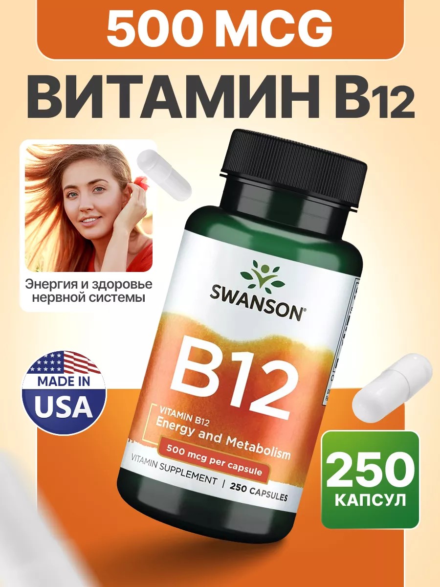 Витамин B12 от Swanson - незаменимый витамин для хорошего самочувствия. Он наиболее известен тем, что вырабатывает энергию в организме и играет жизненно важную роль в формировании красных кровяных телец, доставляющих кислород во все части тела. Он также взаимодействует с витамином B6 и фолиевой кислотой, чтобы улучшить здоровье сердечно-сосудистой системы. Хотя адекватное потребление витамина B-12 важно для всех, некоторые люди могут получить его в виде пищевых добавок, поскольку этот витамин содержится в основном в продуктах животного происхождения.