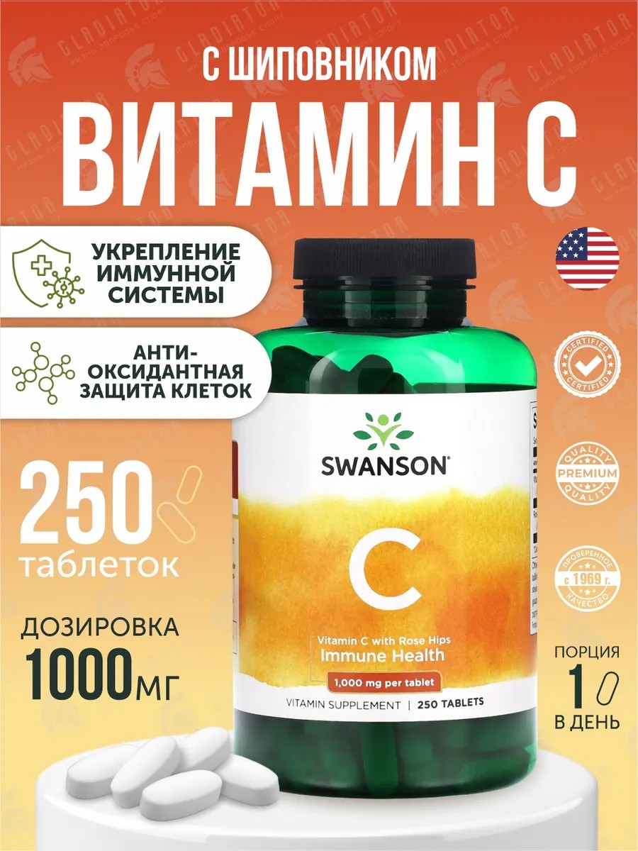 swanson Витамин C-1000 with Rose Hips, 1000 мг, 250 таблеток
