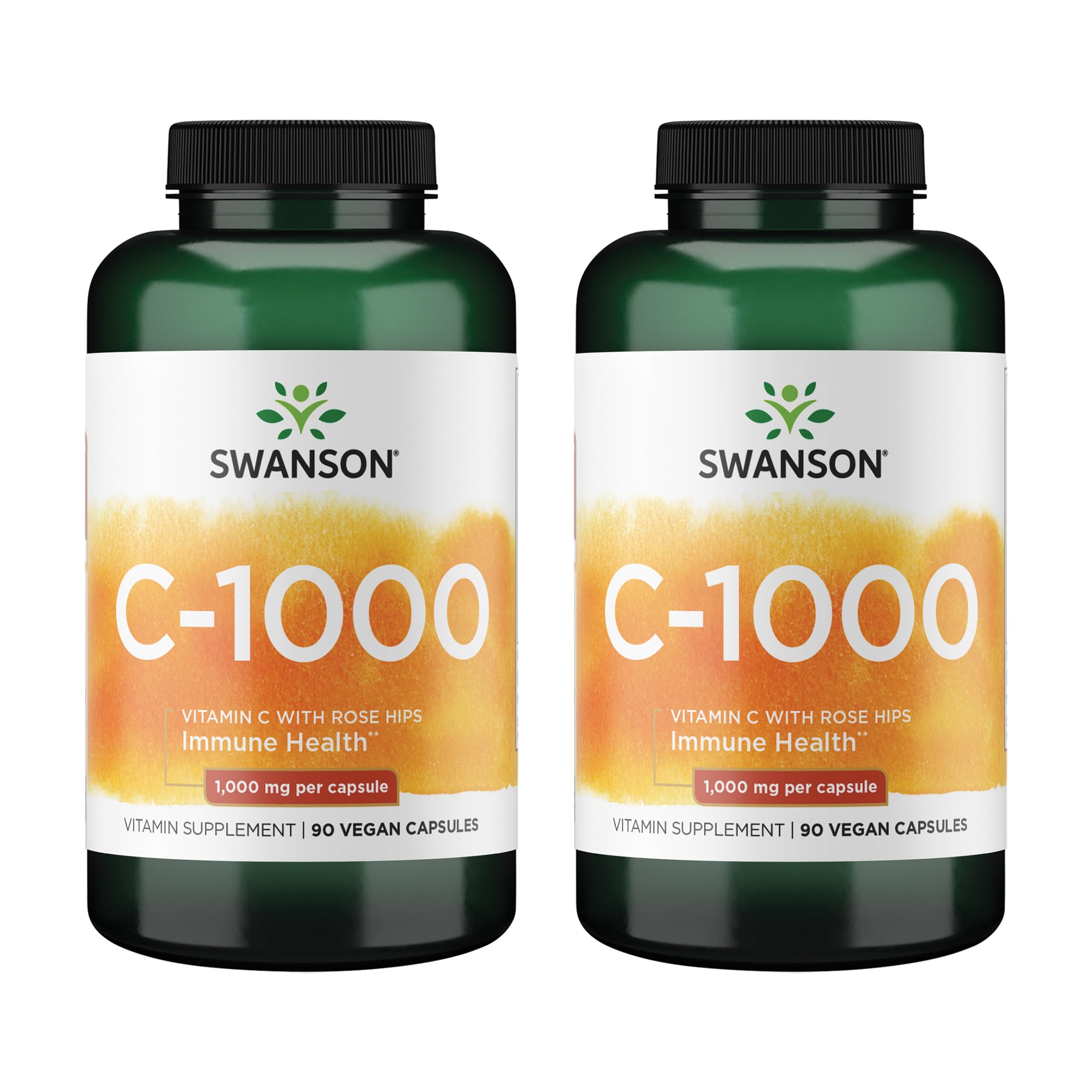 Swanson Vitamin C w/ Rose Hips - Herbal Supplement Promoting Skin Health, Heart Health & Immune System Support - Natural Formula Promoting Protection & Wellness - (90 Capsules, 1000mg Each) 2 Pack