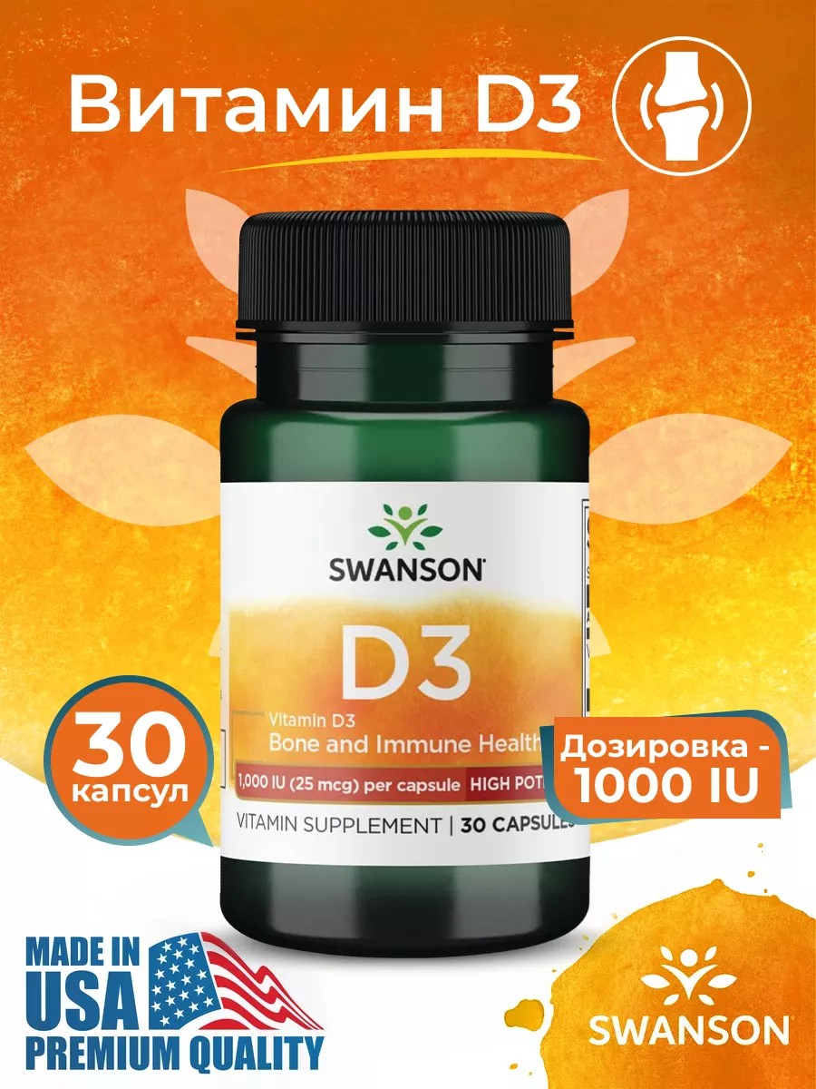 **Витамин D-3 Swanson** - это важный витамин для поддержки костей, который способствует эффективному усвоению кальция в организме. Организм вырабатывает некоторое количество витамина D самостоятельно, когда подвергается воздействию солнечного света, но для людей, живущих в северных широтах, где пребывание на солнце в зимнее время ограничено, естественного витамина D в организме часто может быть недостаточно. Наши капсулы с витамином D-3 с высокой активностью решают эту проблему, обеспечивая впечатляющую 1000 МЕ витамина D-3, наиболее биологически активной фракции витамина D. Поддерживает здоровье костей, а также здоровье иммунной и сердечно-сосудистой системы- Способствует усвоению кальция в организме- Наиболее биологически активная форма витамина D.