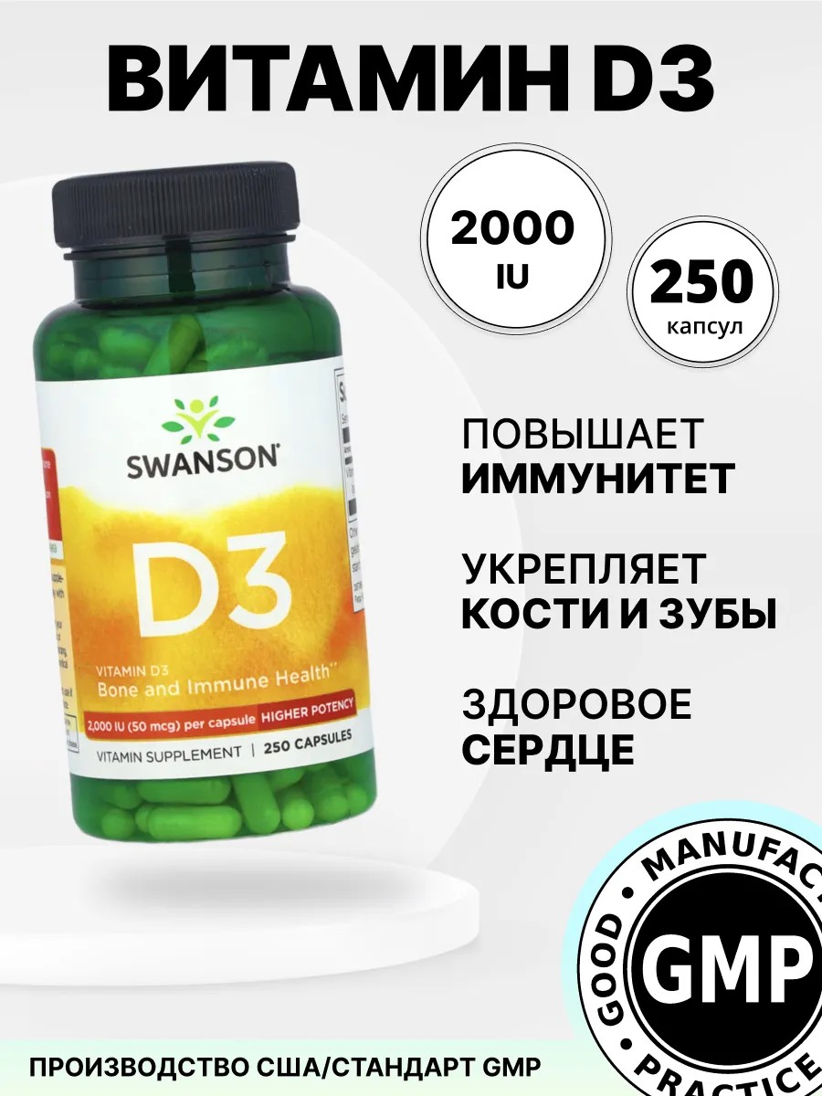 Витамин Д3 Swanson, 2,000 МЕ (50 мкг) — это высококачественная добавка, которая обеспечивает организм важным витамином Д3.