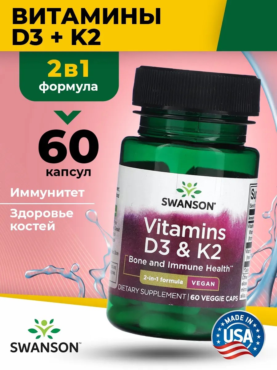 Свансон, Витамины D3 и K2 – 2000 МЕ и 75 мкг, 60 вегетарианских капсул / Swanson, Vitamins D3 & K2 – 2,000 Iu & 75 mcg, 60 veggie capsules – это высококачественная биологически активная пищевая добавка, которая является источником витамина D3 и витамина К2 в форме менахинона MK-7, лучше всего усваиваемого организмом человека. Это препарат предназначен для людей, желающих дополнить ежедневный рацион ценными микроэлементами. Низкодозированные витамины D3 и K2 содержат 50 мкг (2000 МЕ) веганского D3, полученного из лишайника, и 75 мкг не содержащего сои нутового K2 в виде MK-7 в вегетарианской капсуле. Swanson formula поддерживает здоровье мышц, суставов и связок, помогает укрепить сердце и сосуды, поддерживая нормальное кровяное давление. Пищевые добавки с витамином Д3 К2 для укрепления организма, поддержания баланса его жизненной энергией и гормонов счастья, поддержке общего физического и психического здоровья от стресса. Витамин К2 МК-7 входит в состав с разнообразными витаминами и минералами, предназначенного для взрослых мужчин, женщин и девушек. Витамин Д3, также известный как холекальциферол, улучшает усвоение кальция для укрепления костей и зубов. Благодаря calcium обеспечивается полноценное развитие костей скелета, он также увеличивает силу мышц, укрепляет сердечные сосуды. Полезные функции витамина D 3 играют также немаловажную роль в усвоении фосфора в организме человека. А нехватка витаминов д 3 может стать причиной частых переломов и приведет к таким заболеваниям, как остеопороз и рахит. Мультивитамины, также могут способствовать улучшению мозговой функции мозга, памяти и концентрации, а также поддержке здоровья глаз. Группа витаминов также способствует усилению иммунной системы, защищая организм от простуды и других неприятностей. Каждая комплексная капсула полна питательных веществ, которые могут быть особенно полезными для питания взрослых. Vitamin D3 К2, это натуральный витаминный комплекс может быть полезен для спортсменов и любителей спортивных активностей, так как он помогает улучшить производительность и рост выносливости во время спорт тренировок. Витамины помогают поддерживать здоровье и красоту, волос и ногтей, сохранять кожу в хорошем состоянии и усиливают иммунитет. Прием капсул способствует улучшению памяти и зрения, а также против развития простуды. Витаминный complex может быть полезен для людей, страдающих от стресса или проблем со сном. Он также может быть полезным для людей, стремящихся к похудению, контролировать вес и набор массы. Эффективный товар Свансон поможет в поддержании бодрости и активного образа жизни, улучшит физическое и эмоциональное состояние. ПРИМЕНЕНИE: принимайте по одной вегетарианской капсуле в день во время еды и воды. ПРЕДУПРЕЖДЕНИE: Проконсультируйтесь с врачом перед применением пищевых добавок, если вы проходите курс лечения от какого-либо заболевания, а также в период беременности и лактации.