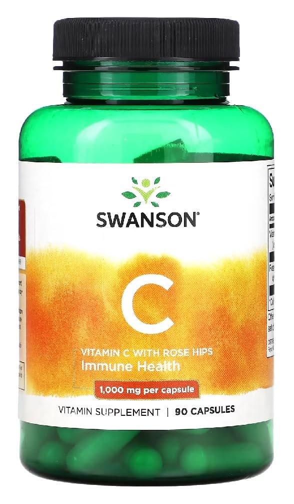 : Discover the ultimate health-boosting supplement with Swanson Vitamin C enriched with rosehip. Designed to effectively support your immune system, this potent formula offers robust antioxidant properties, helping to protect your body against free radicals. Each softgel contains an optimal dose of vitamin C, combined with natural rosehip extract, known for its additional health benefits. Perfect for daily use, this supplement helps maintain your vitality and overall well-being. Easy to integrate into your routine, it's ideal for those looking to improve their immune health and benefit from the antioxidant properties of vitamin C. Ingredients and nutritional values per daily dose (1 capsule): Vitamin C (as ascorbic acid) (1,000 mg) (1,111 ), Rosehip extract 4:1 (15 mg), Gelatin, Magnesium salt of fatty acid, Rice flour, Silica. Directions: As a dietary supplement, take one capsule daily with water and food. Safety Warning: For adults only. Do not take this product if you are pregnant or breastfeeding. Consult your healthcare provider before using this or any other product if you are taking medication or have a medical condition. Dietary supplements are not a substitute for a balanced and varied diet. Keep out of reach of children. Do not exceed the recommended daily dose. store in a cool, dry place. See more