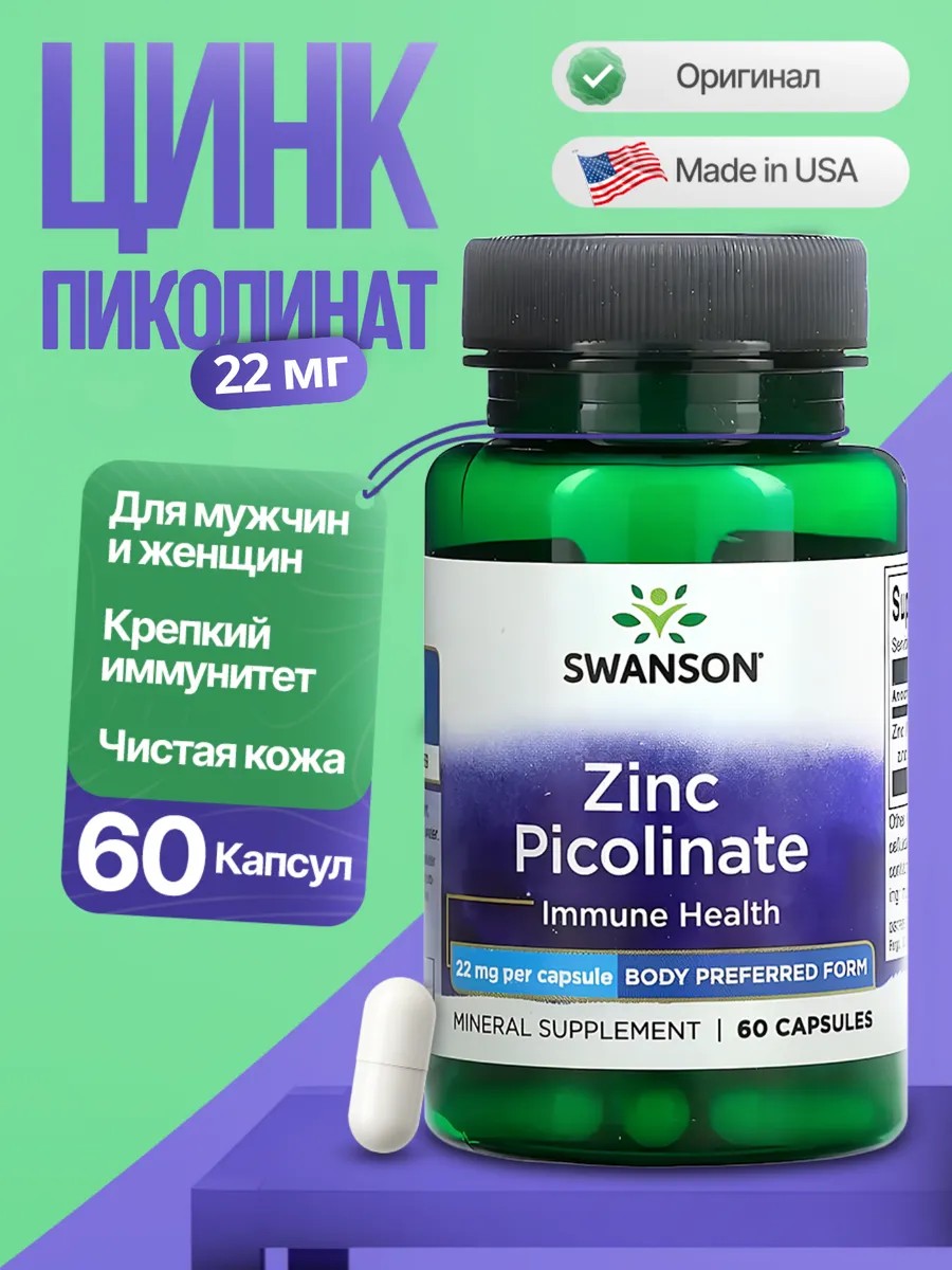 | Комплектация | swanson zinc picolinate 22 mg 60 капсул - 1 банка |