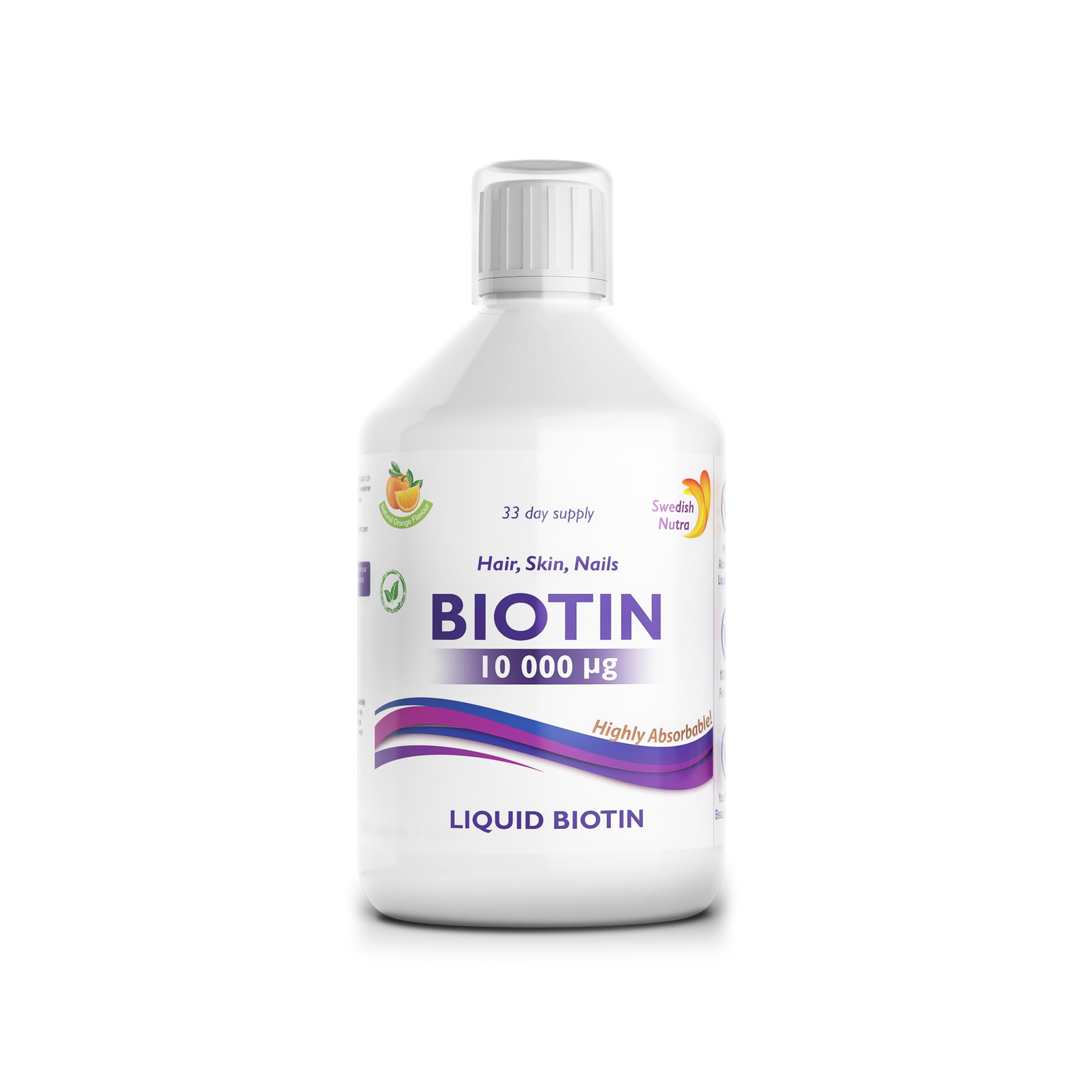 Swedish Nutra Biotin 10000 UG liquid supplement 500 ml pack 33 days supply plus vitamin C for healthy hair skin and nails vegan and gluten free 100 natural Liquid Biot